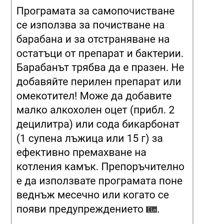 И аз си ползвам белина за почистване на пералнята, предполагам знаете, че с нея трябва да се пуска на ниски градуси.