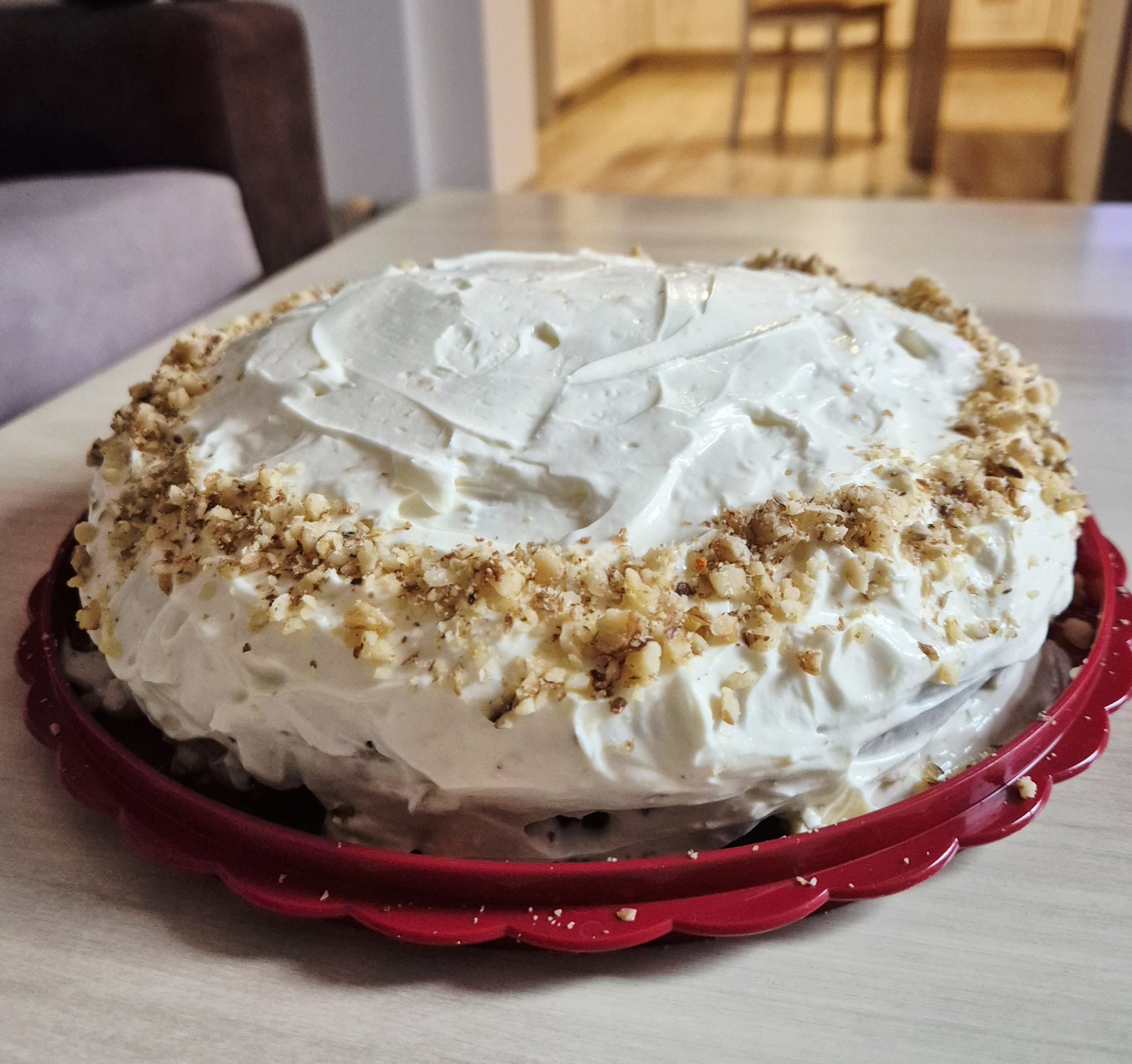 Едната ми торта я изядохме вече. Вкусна беше. Другата за утре. Дано да е вкусна и да останат доволни дружките, че за снимки не става. Търговският вид не мога да го докарам 😆