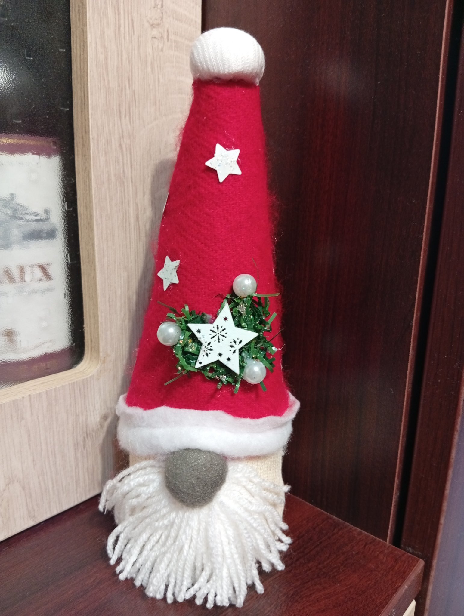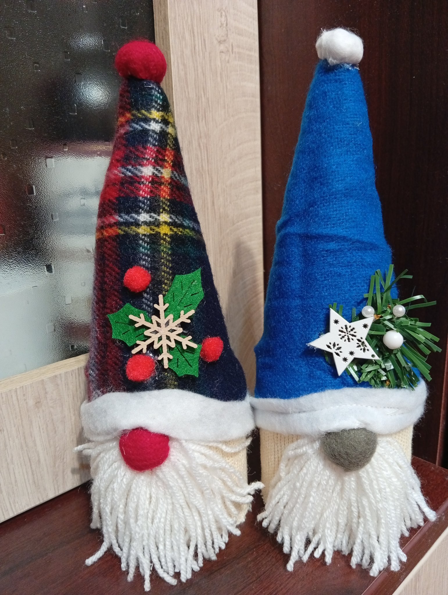 Още не съм сложила коледната украса, есенната си е в дневната. Само гномчета и елхички правя.