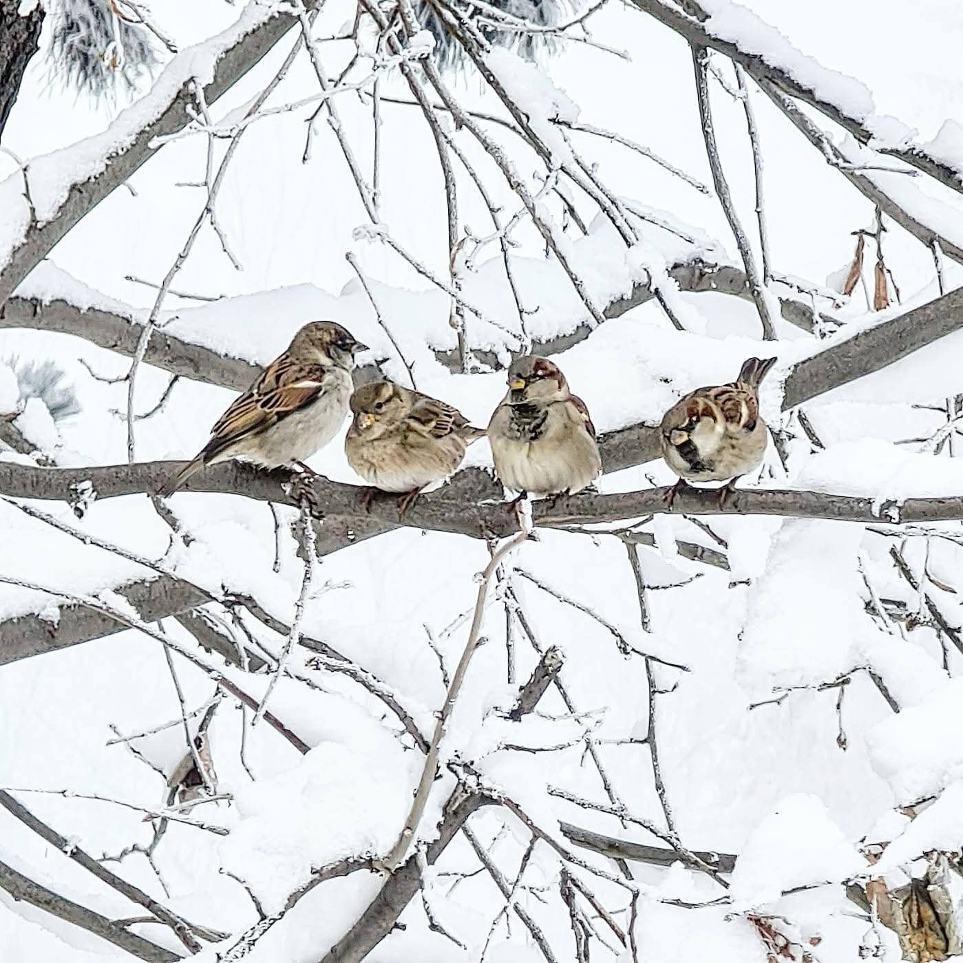 Отивахме до магазина, Митачето се заигра с една котка и докато го чаках се загледах във врабчетата. Това е една от най-любимите ми снимки, които съм правила - 4 врабчета на едно клонче.