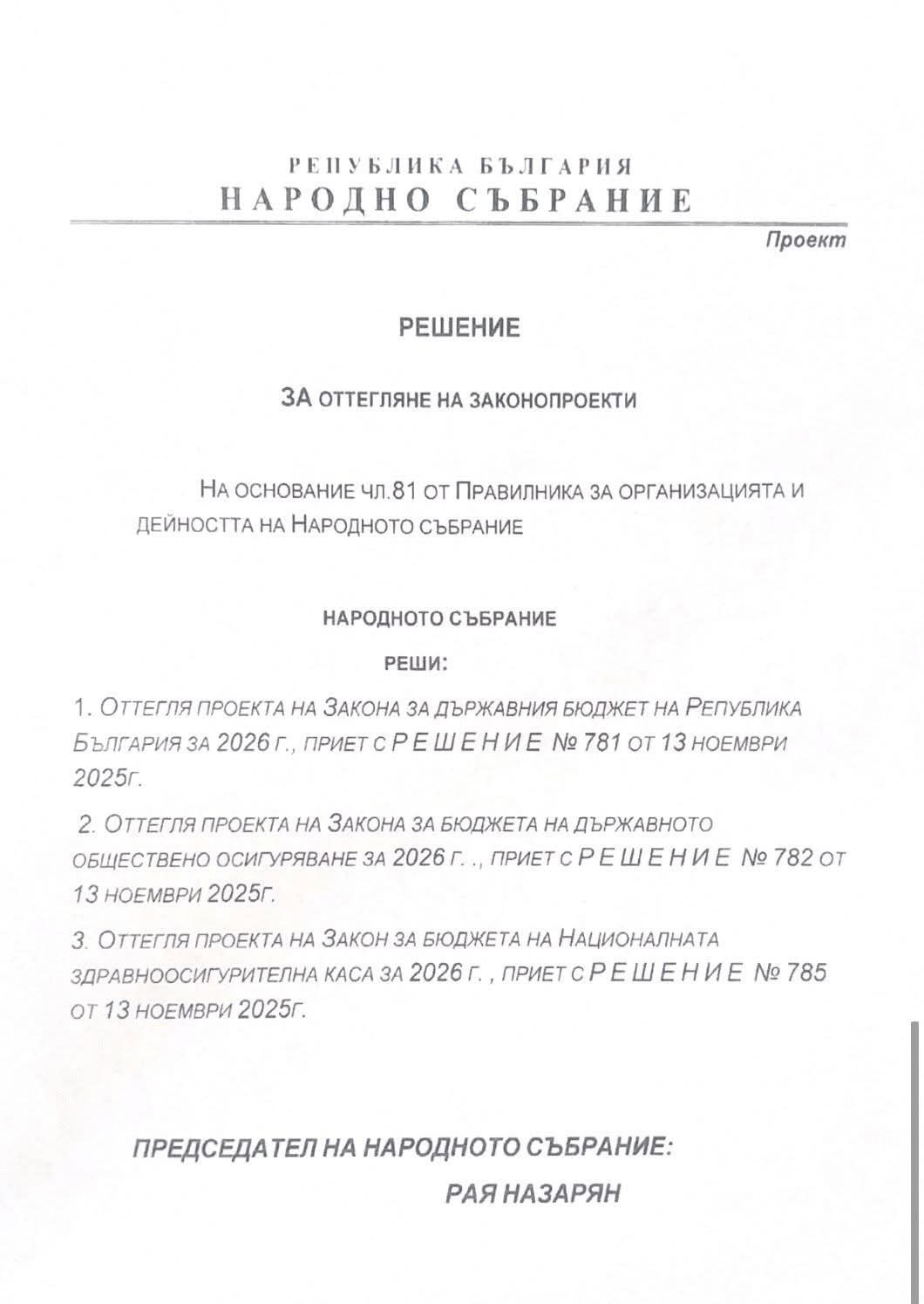 Иначе, бюджетите са оттеглени. Теменужка Петкова беше казала, че няма да се отменят, само ще се префасонират, понеже били приети на първо четене. Явно може.
