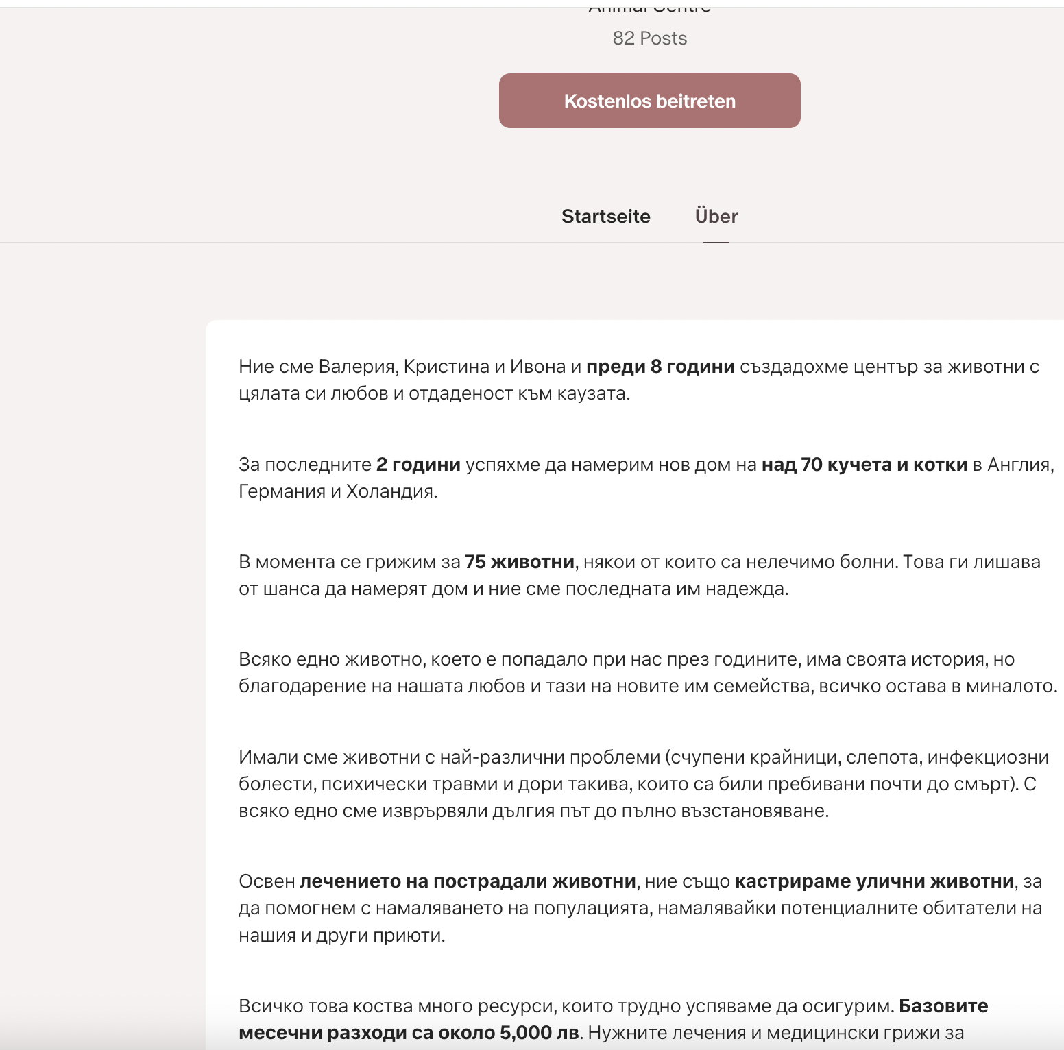 Ако не се лъжа, Валерия беше споменавала, че не иска да се знае локацията на приюта, защото не спират да изоставят там още и още животни за които не могат да се грижат. Иначе каузата й буди съмнение, защото доста хора бяха предложили да помагат с почистване, разходки и т.н., но тя беше казала, че има нужда от пари, не от подобна помощ.