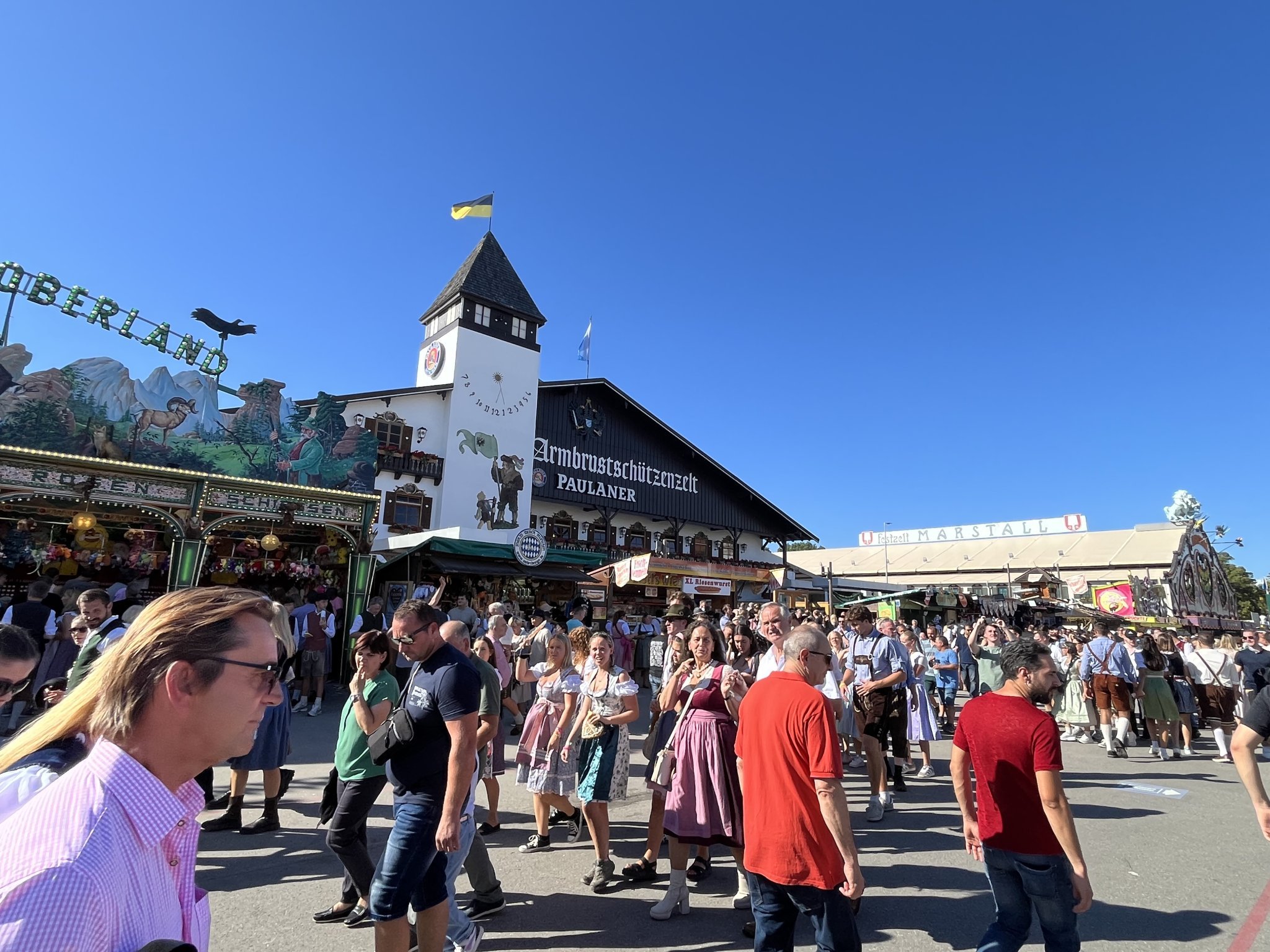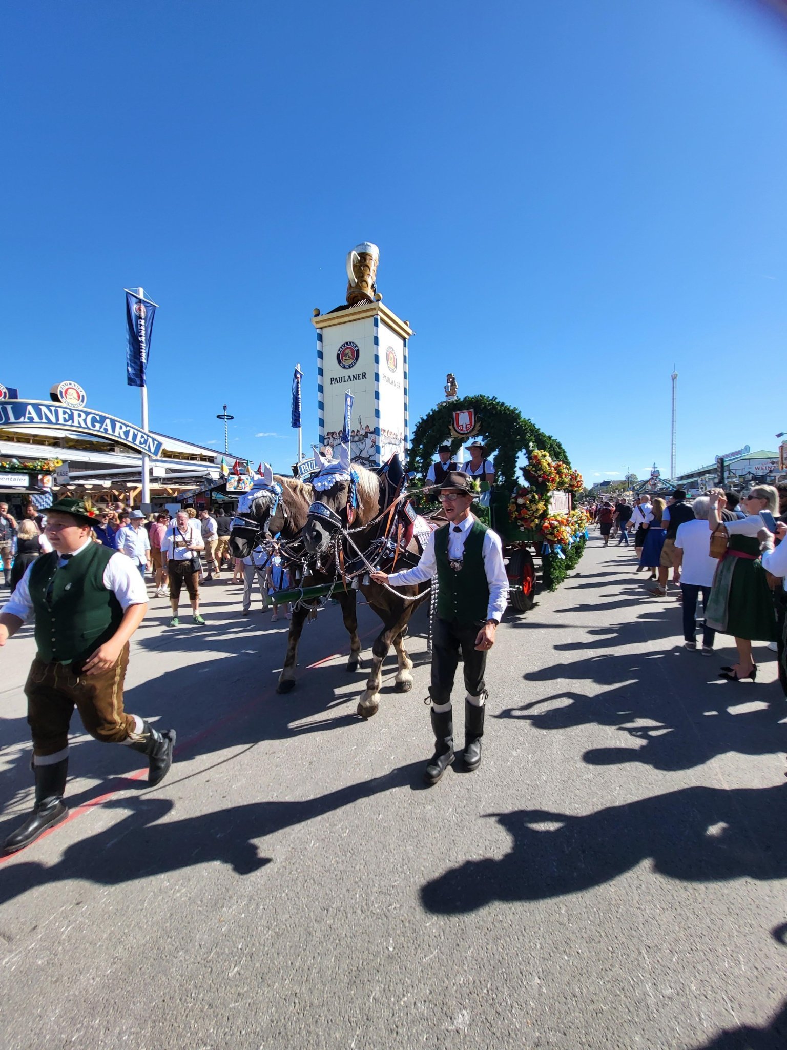 Иначе е супер тържествено и е много хубаво да гледаш всички традиционни баварски бирарии да дефилират в разкошно украсените си каляски, с буретата бира и прекрасни коне. Обаче тая цялата лудница вече ми е нетърпима.