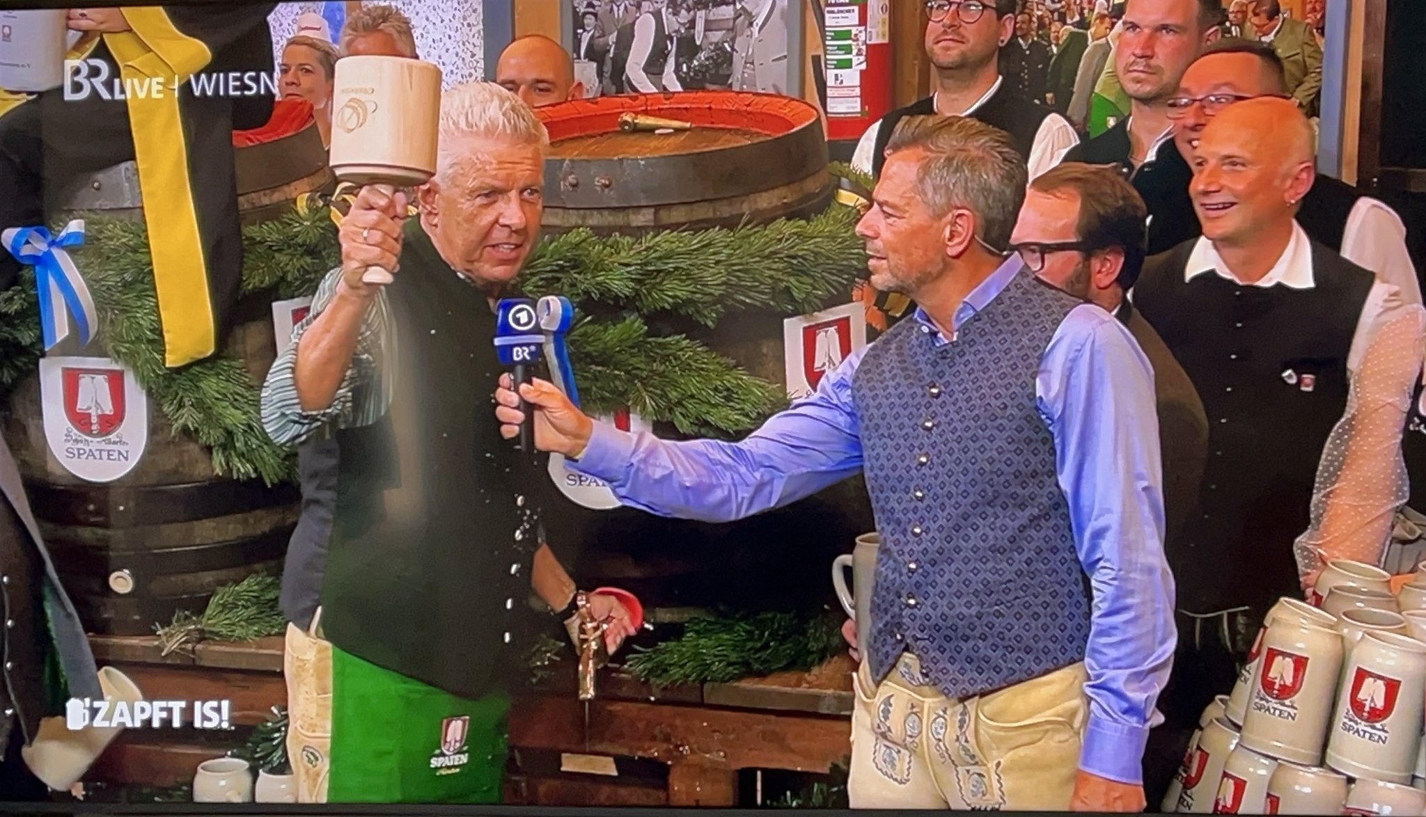 Тук кмета ритуално чупи кранчето на бурето и в възторжени викове O, zapft is! се започва якото пиене на бири. Laughing