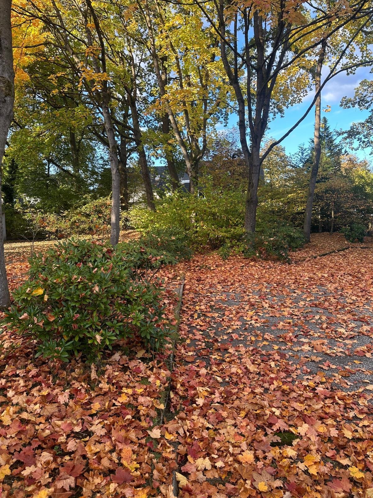 Не си мислете, че съм в гората. Това е пред дома ни. На следващия ден всичко беше почистено, за съжаление не се сетих да снимам как чистят. И докато чистеха, падаха нови листа, но графикът си е график😄