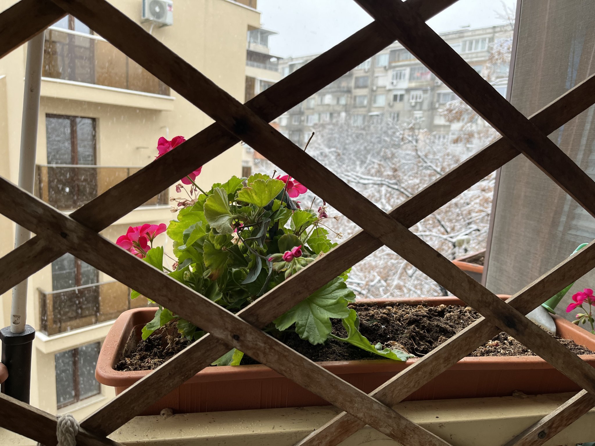 Цъфтящо до вчера мушкато и снегът с който с е събудихме тази сутрин . Пловдив , южно изложение Simple Smile