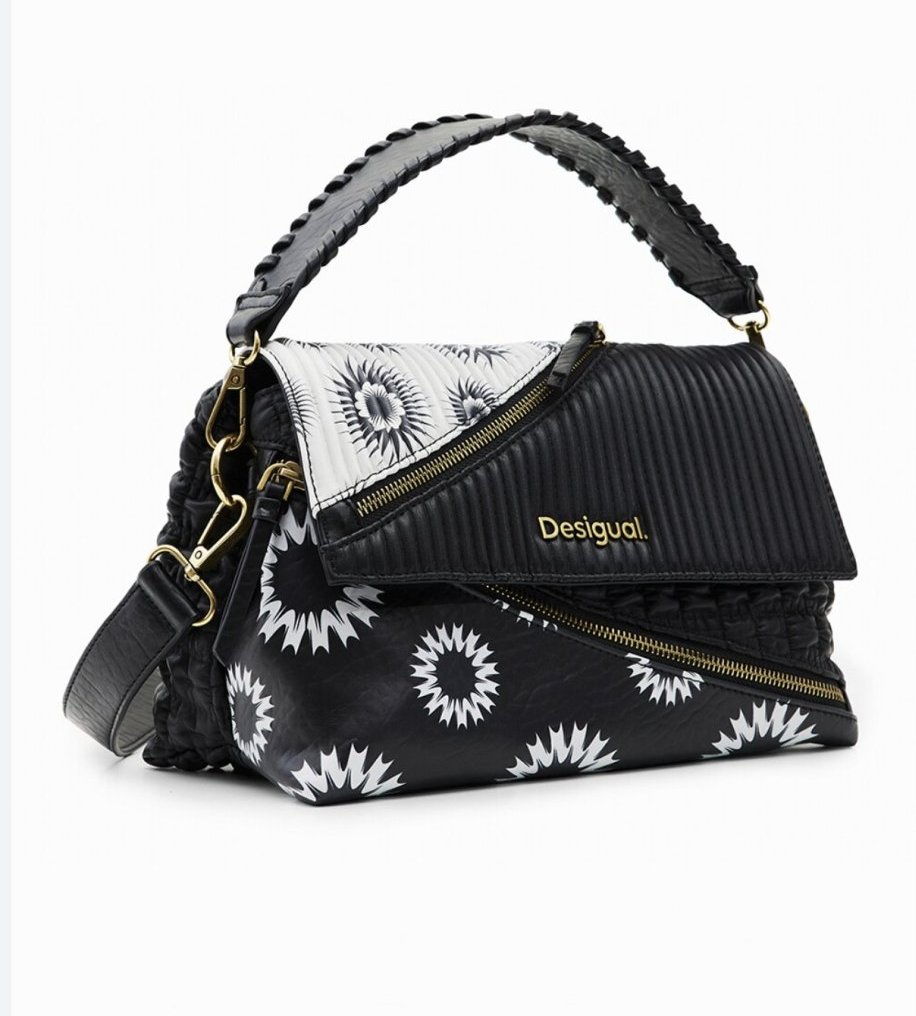 Получих платнената чанта на Desigual. Харесва ми, остава. Нито е малка, нито голяма, има достатъчно място. 2 основни отделения, като едното е с цип, и 1 малко с цип. Прехлупването е с магнитно закопчаване. Пазарската чанта на MADS Norgaard е доста голяма/широка.