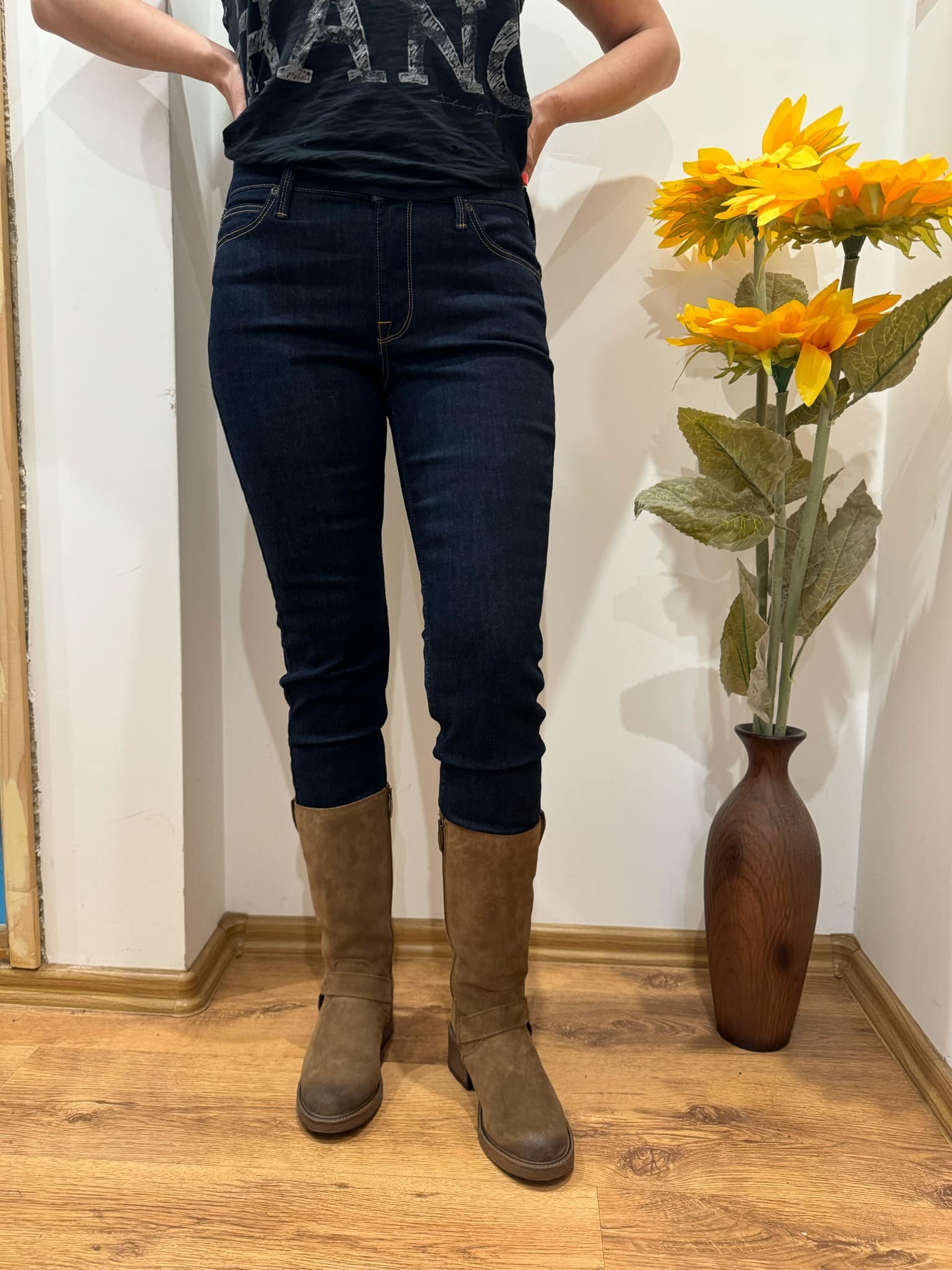 Рени, ботушите са много хубави. За дънките - нагоре ти стоят много добре, по малък номер ще ти се впиват вероятно 🤔