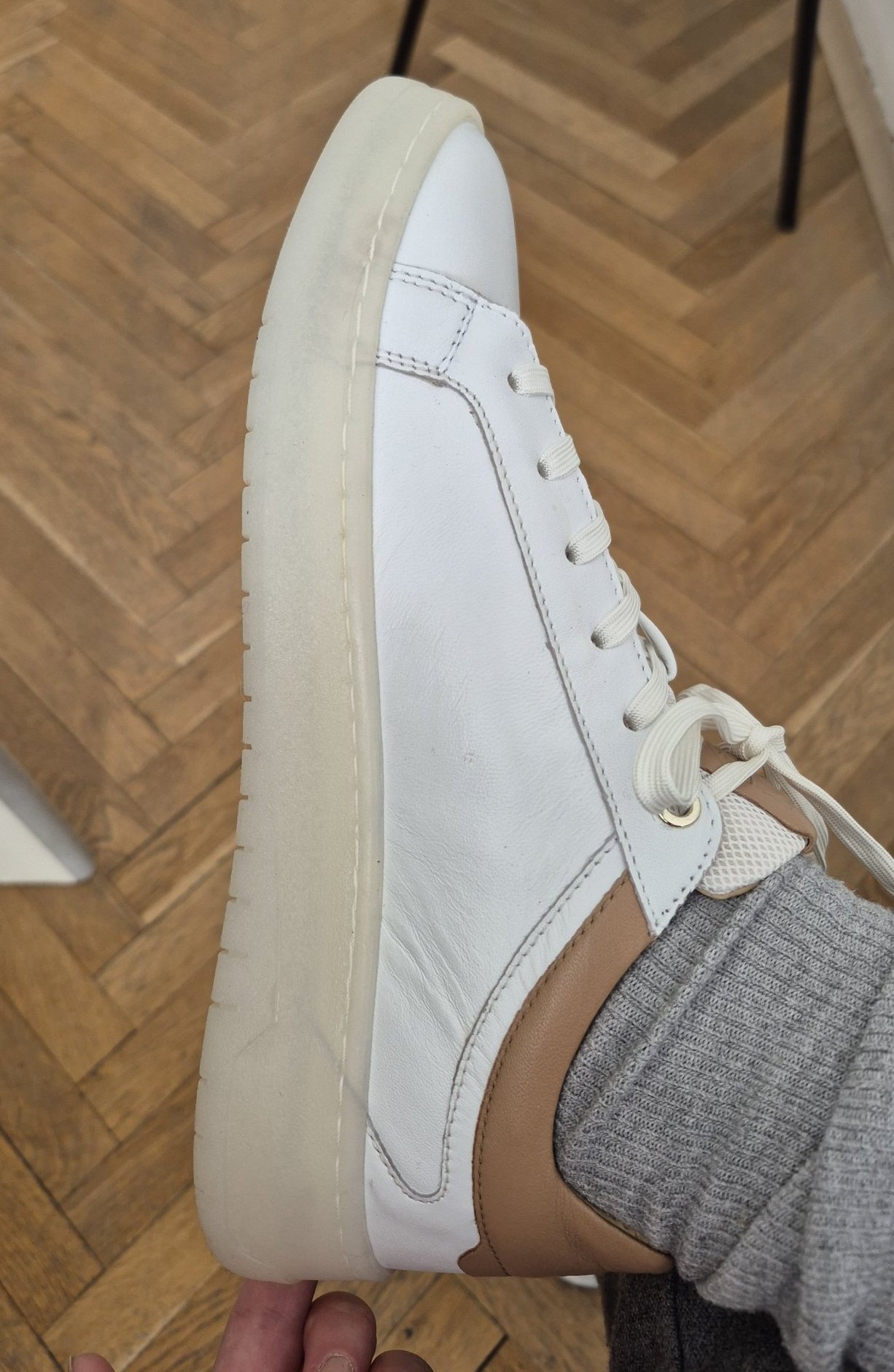 Получих преди малко тези бели кецове ТТ Багат - много са хубави, единствено не ми харесва, че ципът е метален и заяжда леко. Взех 40, нося 39 - леко са ми широки, но пък моят номер сигурно щеше да ми стяга. След малко ще пусна снимки