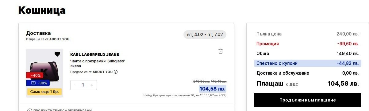 Сега чакам да ми възстановят парите за маратонките от Обувки, нещо се мотаят, два дена си писах с чат бота, и одеве получих имейл, че са ми обработили връщането.