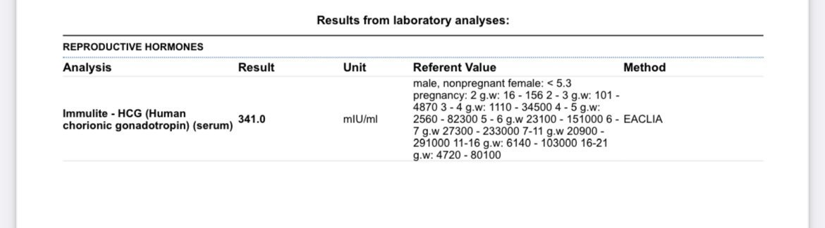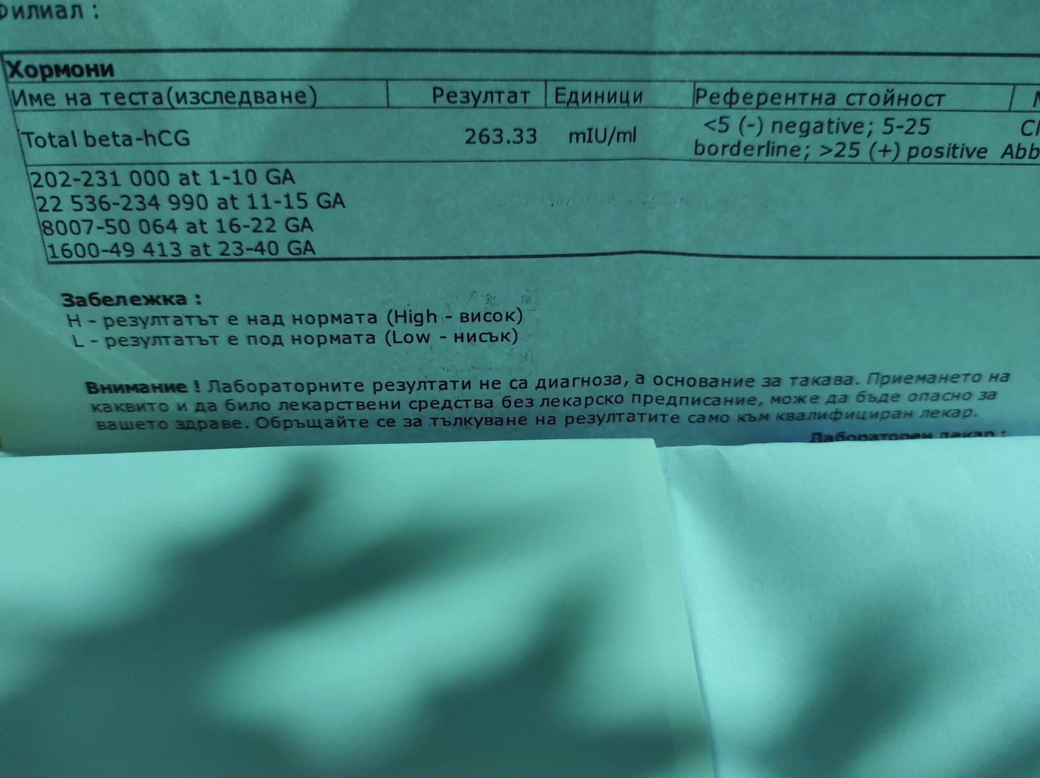 След няколко положителни домашни тестове днес пуснах и кръвен. Това са резултатите. Дано всичко е наред! Бих се радвала да споделите кога е моментът за преглед при гинеколог, предполагам все още е рано?