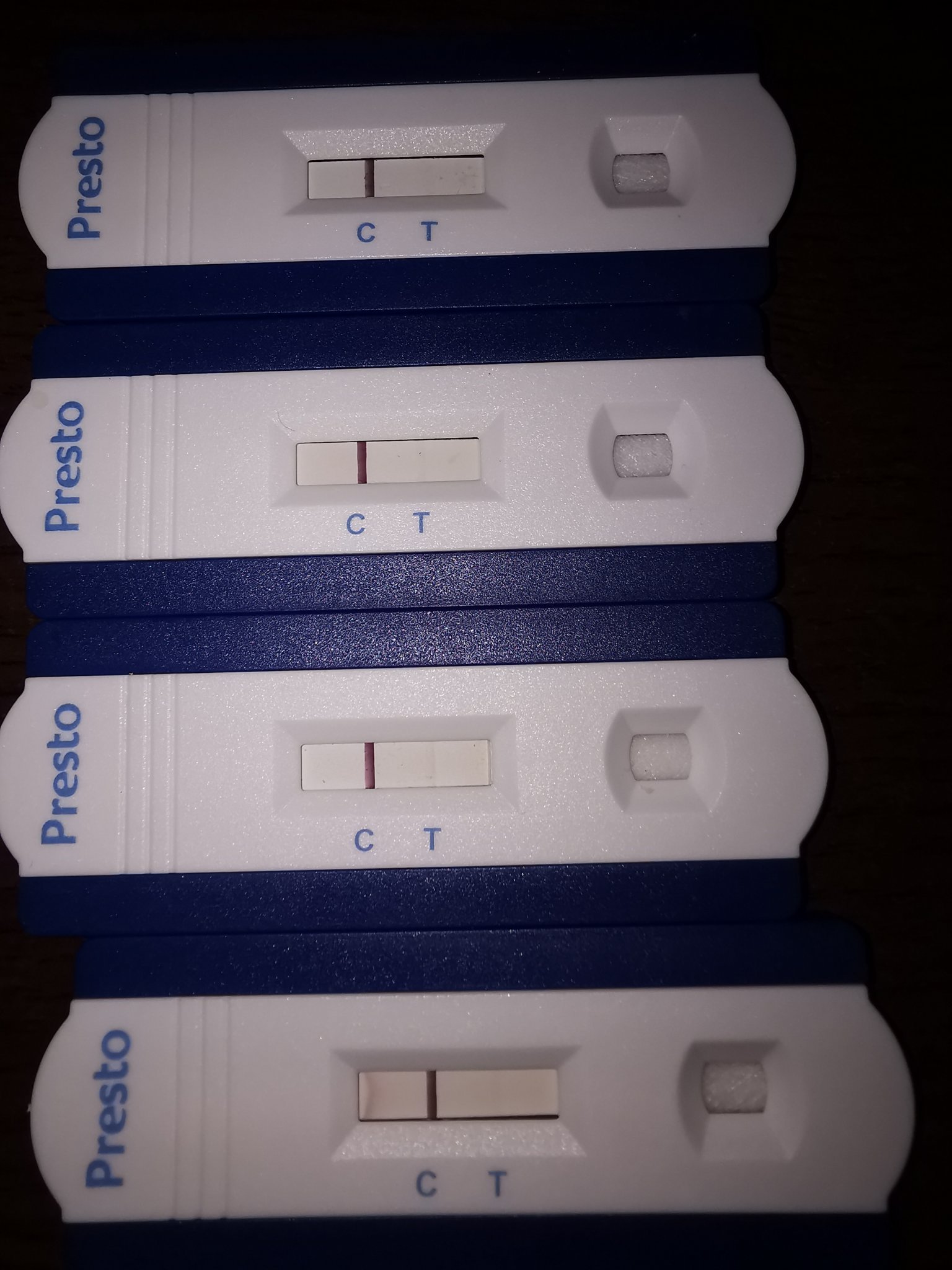 Неди, тестовете изглеждат положителни, съветвам ви утре да направите тест отново, но или кръвен, или уринарен, но на друга марка, например шуърчек. Чертичките на престо изглежда често са доста бледи. Ако наистина сте бременна, бих очаквала на друга марка тестът да бъде по-ясно положителен. Пожелавам успех Hug