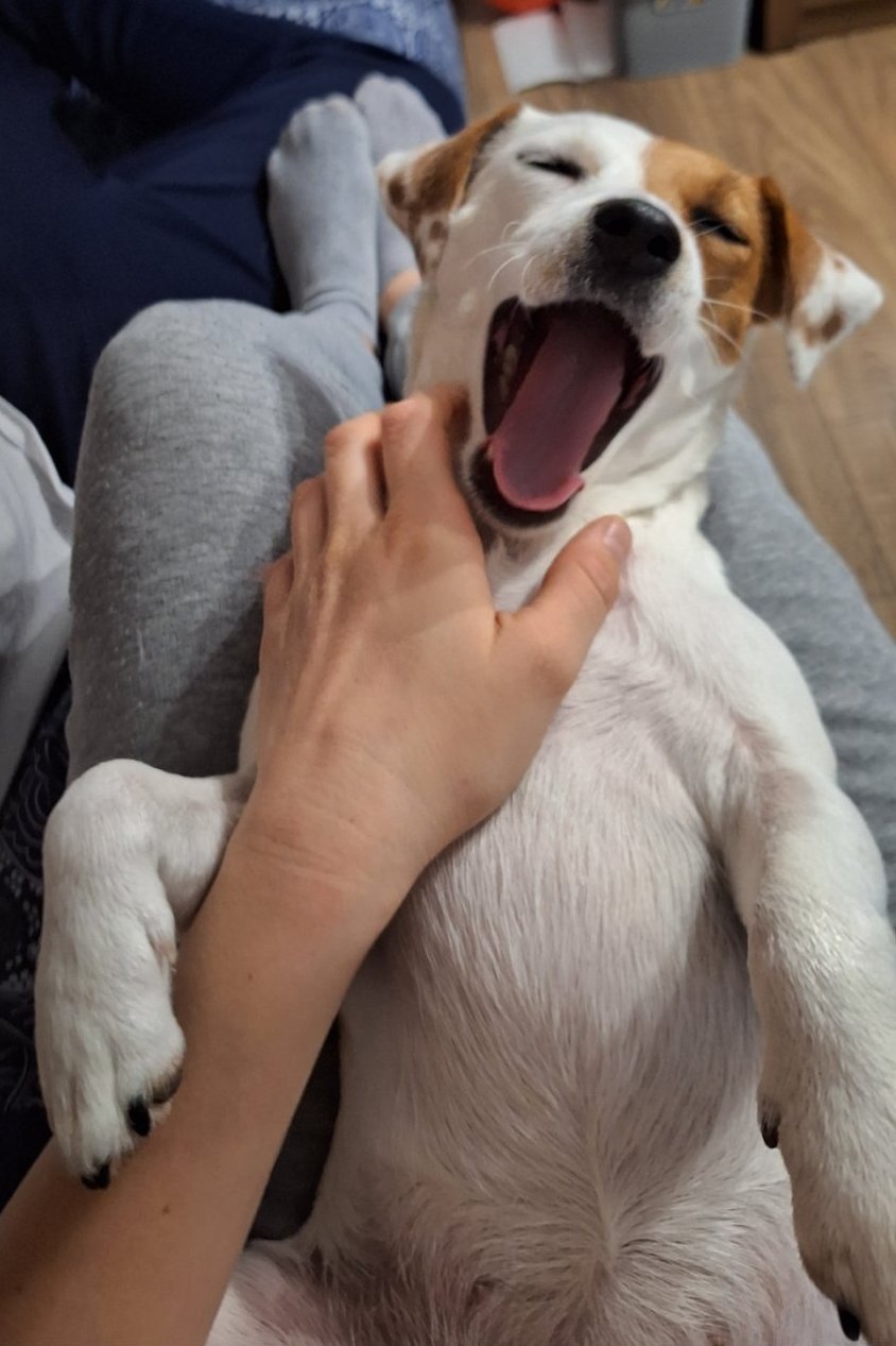 И Вивата успях да снимам на вчерашната разходка. Не стои туй чудо мирно хич, без лакомство си прави оглушки, а с лакомство изпълнява всичко но е нетърпелива и само се върти, облизва, побутва с муцуна или с лапа. Няма такава лакомия 😆