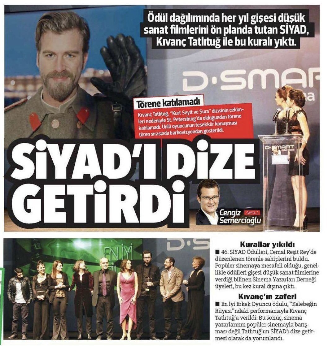 „Тази година имаше голяма революция в наградите. Кино критиците дадоха наградата за най-добър актьор на Къванч Татлъту за изпълнението му в "Kelebeğin Rüyası"... Но би било жалко, ако не бяха направили това...