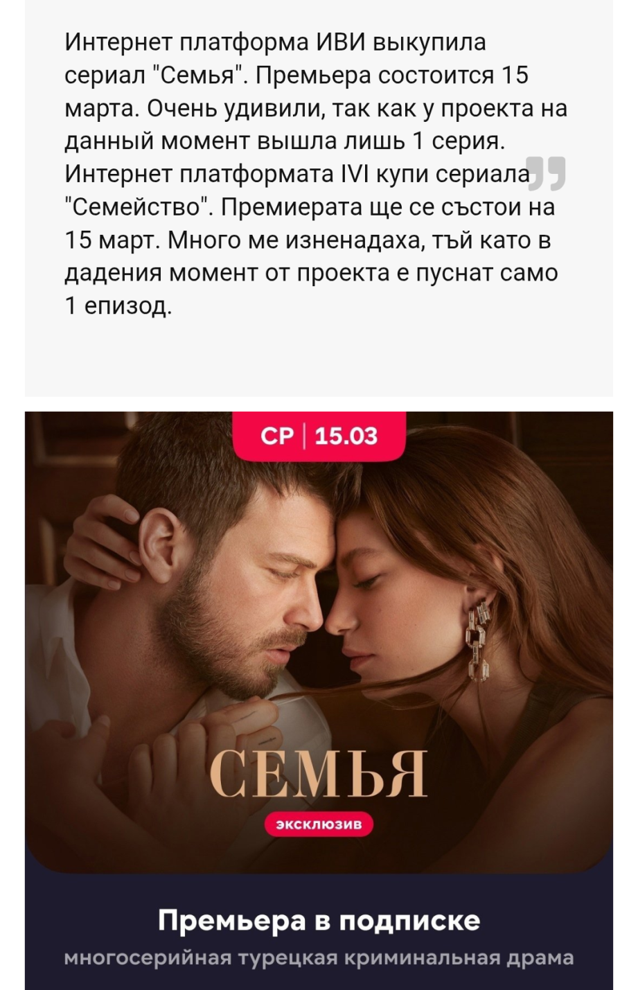Руската платформа IVI купува Aile  след първия епизод и започва излъчването му на 15.03