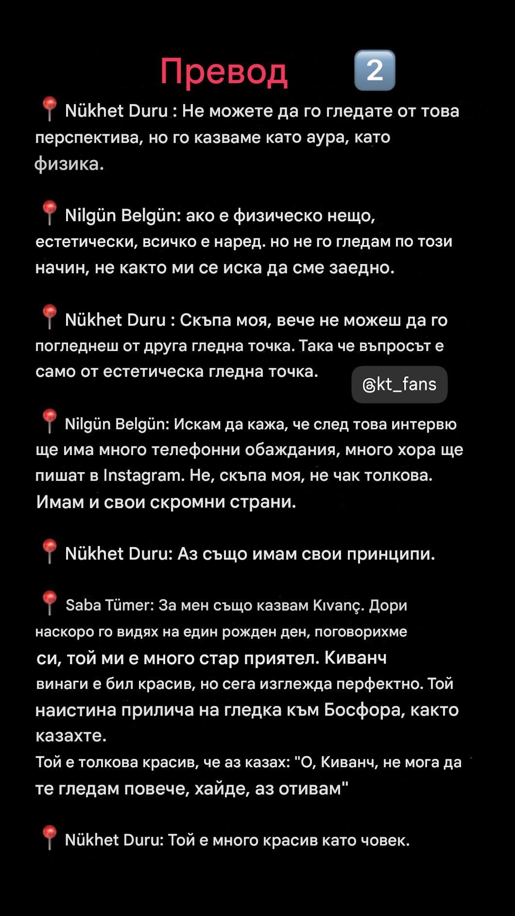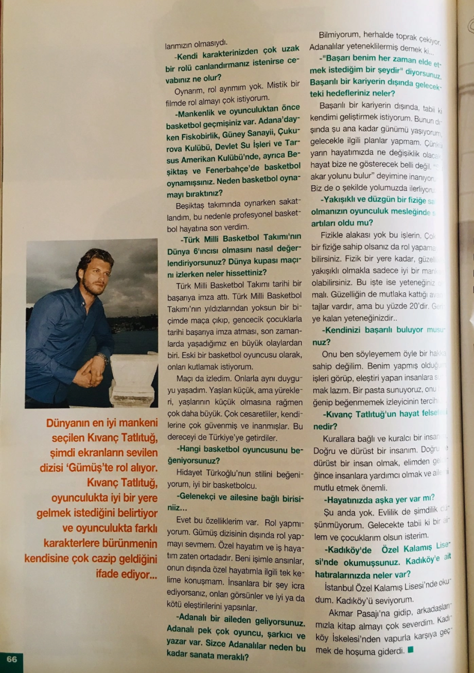 Освен това, говорейки за филми и телевизионни сериали в турското кино, Алчо Нури заяви, че Къванч Татлъту е един от любимите му актьори. Разбира се, има добри телевизионни актьори от новото поколение, но Kъванч е номер едно за мен.