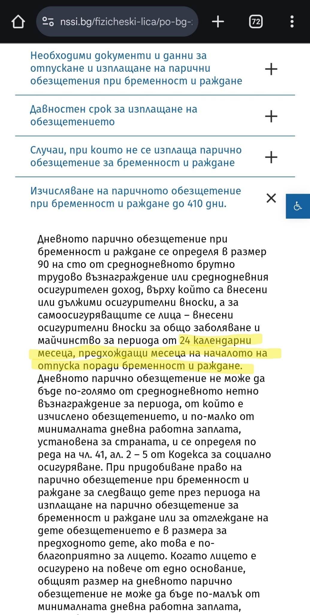 Скъпи дами, ВИНАГИ се изчислява нова база за болничния 45 дни преди термин. Това е ново основание. Базата също е различна - 24, а не 18 месеца.