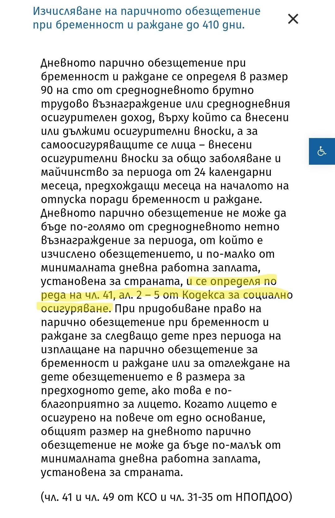 Също така се надявам някога да видя с очите си човек, който няколко години се е осигурявал на поне 3 000, излязъл е в болничен в ранна бременност, прекъснал го е последните дни с отпуск, и не е взимал после 1500 лв майчинство. Наживо няма да видя, защото никой около мен не прави тази глупост да си прекъсне болничния и после всичките 6 месеца болничен с никакви осигуровки да му се сметнат заедно с година и половина хубави осигуровки. И да взима нещо средноаритметично.