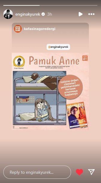 Енгин репостна в сторито си снимката от сторито на списанието.