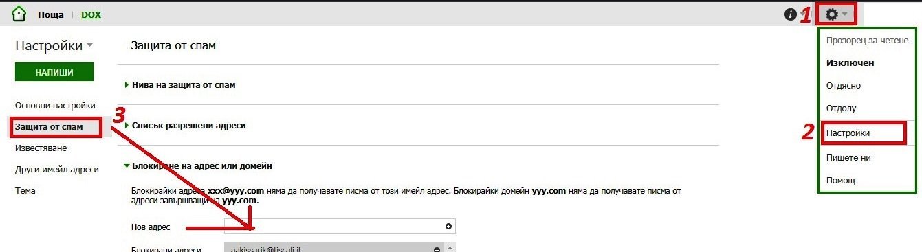 Допълвам: Ако изпращача е иван@досадник.ком и го добавите в Блокиране на адрес или домейн, няма да получавате от иван@досадник.ком.