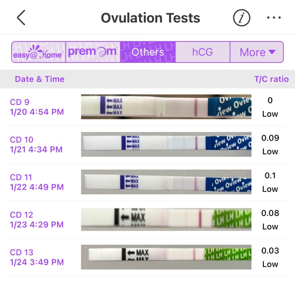 П.С. Поръчах си от Англия ( ако не се лъжа) Мира фертилити. Това е устройство, което на принципа на пикливи тестове измерва нивата на ЛХ, ФСХ, Естрадиол и Прогестерон и показва кога ще е овулацията, както и пиковете и спадовете на ЛХ и Прогестерон. Вместо да ходя да се боцкам всеки месец, пикаеш на тестове. Видях го в Тик Ток и Инстаграм, че много го ползват по чужбина. Скъпо е, ама то и тестовете по лаборатории на са евтини.