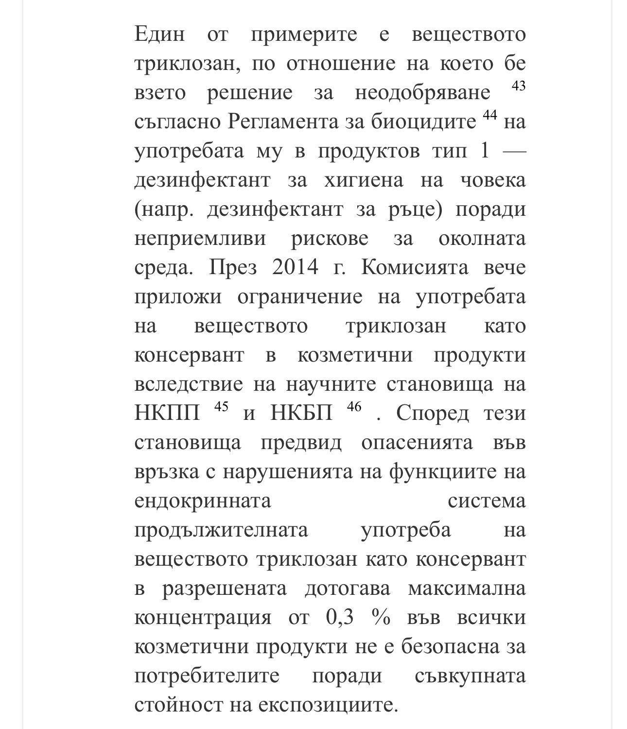 Може би трябваше да се запознаете с други консерванти - формалдехид отделящи (ДМДМ хидантоин, диазлинидил уреа), както и с хидроксиацетофенон. Не всички фталати са опасни, а само етилхексил фталат. Бисфенол А е забранен. Триклозана има такива опасности, да, но както сте написали е лимитиран до 0.3 %, и не се употребява много, още повече, че има камара алтернативи.