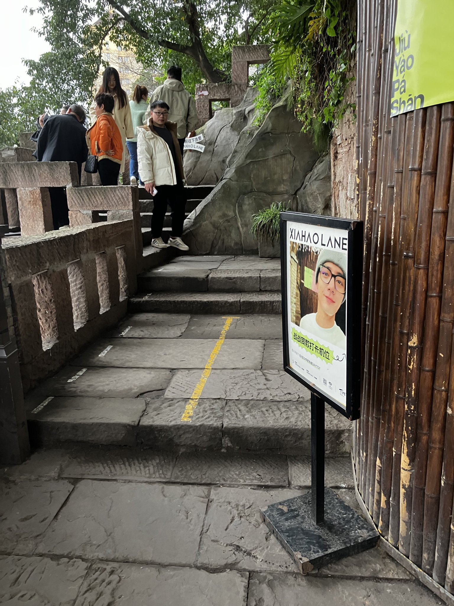 Китайците ме впечатлиха с организацията, чак да слагат снимки по маршрута само заради Сяо Джан... ама пък сигурно носи приходи на Чунцин, заради феновете, които обикалят по същия този маршрут Joy.