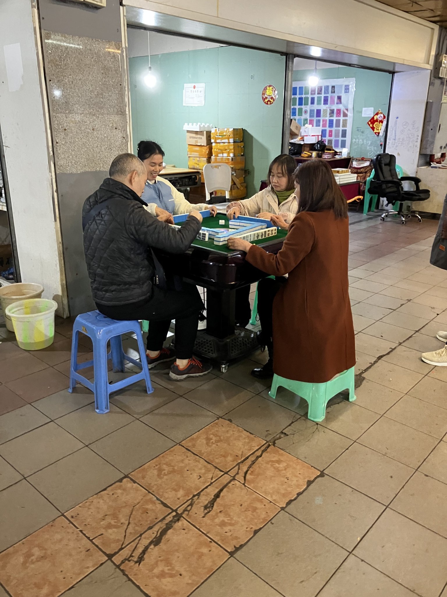 Незаконното казино, в което играят маджонг със залагания е точно в подлеза под полицейското управление. Не се и опитват да се скрият.
