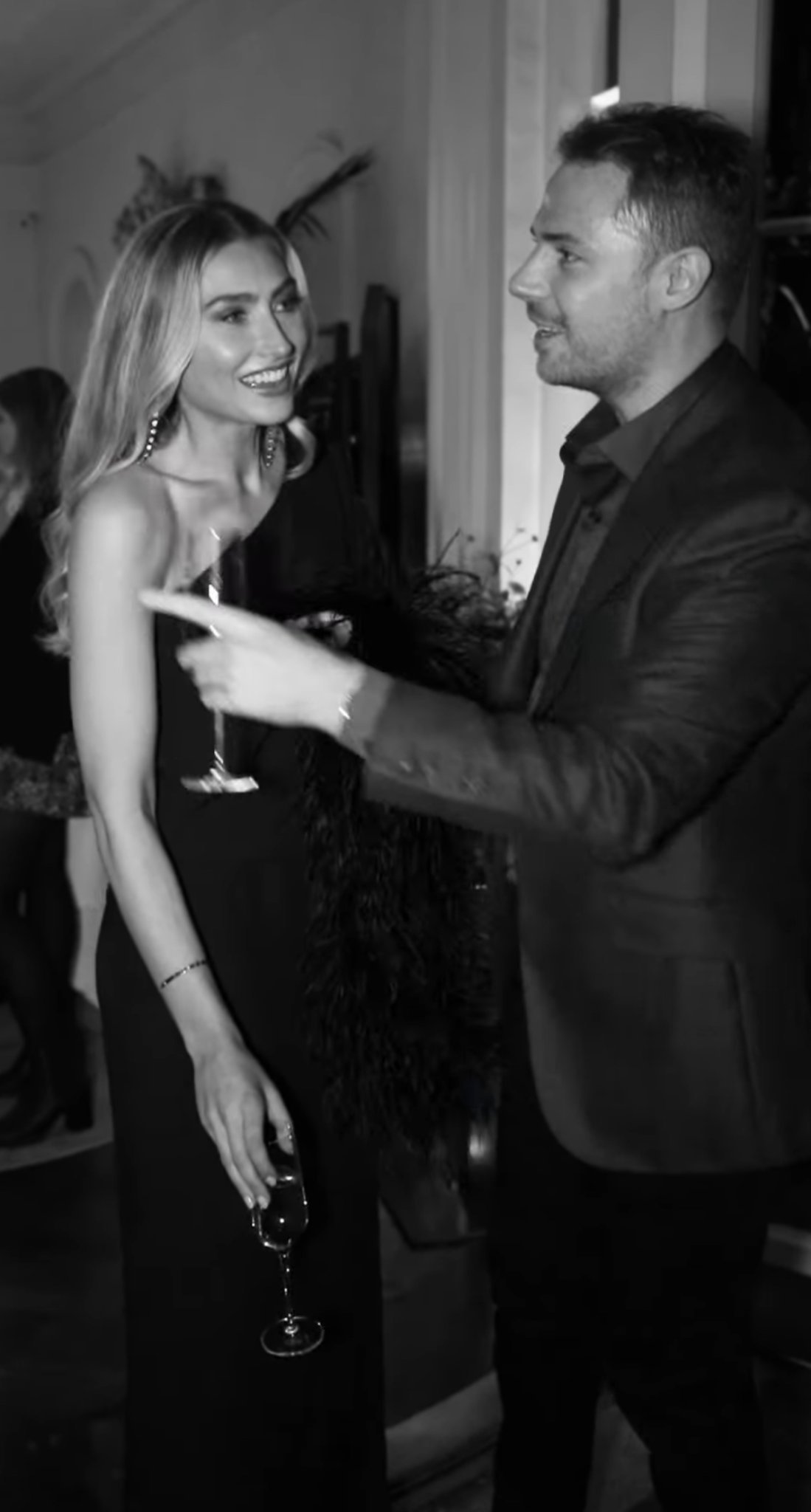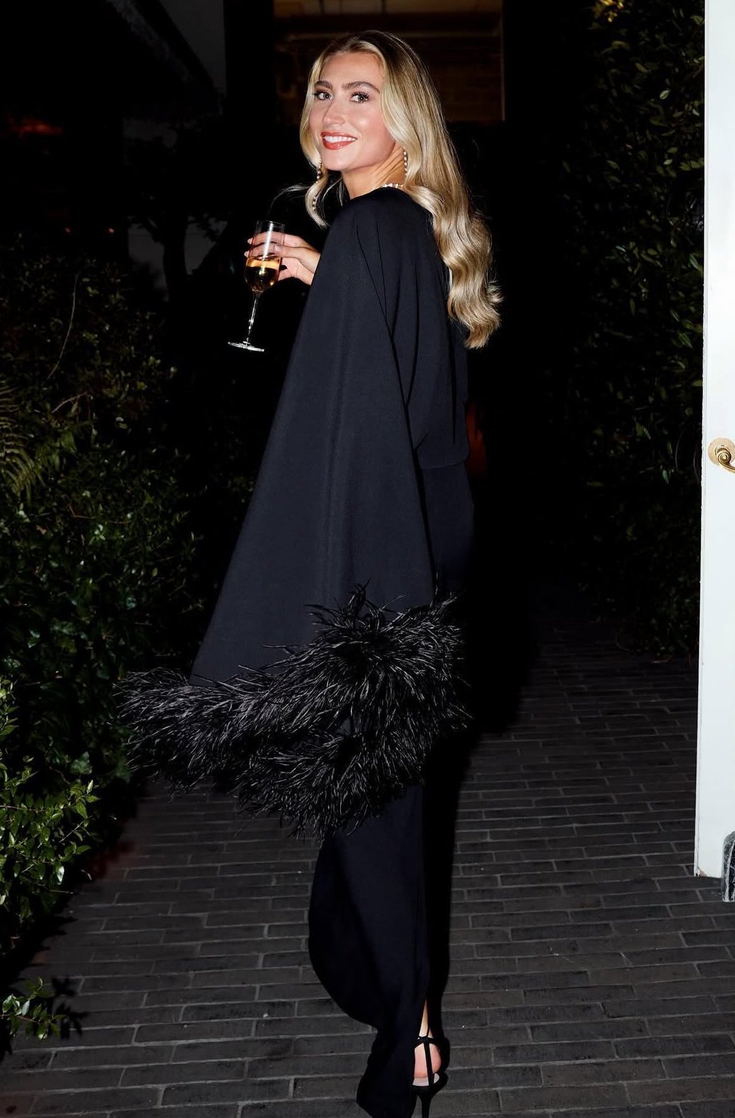 На мен черната рокля с перата ми харесва,  макар че аз лично нямам къде да отида с такава Simple Smile Но ако си представим, че имам бих я съчетала със сребристи или черни сандали и точно такива по-дълги обеци, каквито носи колежката на MERA на снимката.