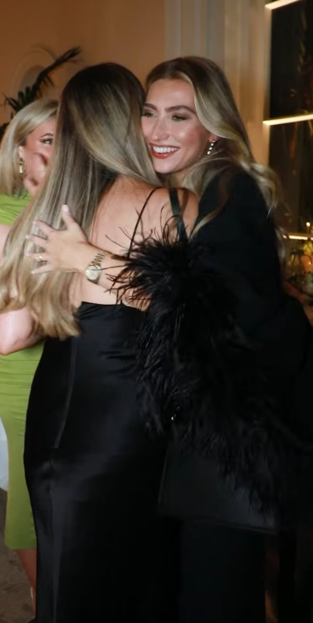 Мини дължина рокле от коприна с разголен гръб ала нощница и покрит с ефирен халат + пера дори и за над 1000 евро (колкото струва показаната къса черна рокля) не е гаранция за вкус. Това че е скъпо не го прави подходящо.