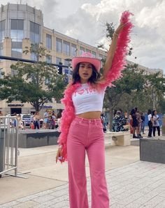 Подобни неща последно видях, че размятаха на концерта на Хари Стайлс - пера, пайети, розово, зелено..там беше забавно.