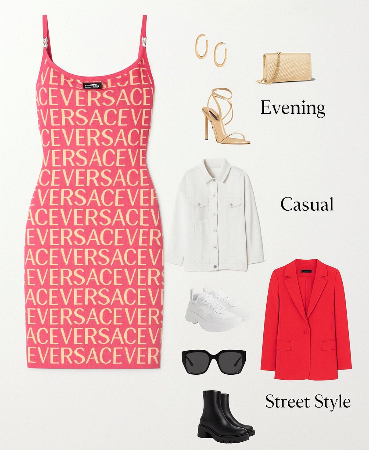 Тази рокля  на Versace е дръзка и ярка – изисква стройна фигура и увереност за стайлинг. Аз си я представям като част от аутфит за някакво тематично събитие без значение по кое време на деня ще е. В комбинация с по - семпли палто , обувки и чанта може да изглежда много добре.