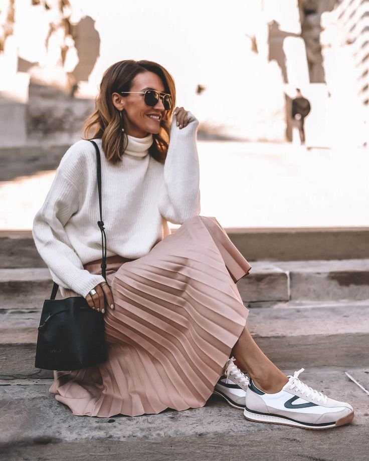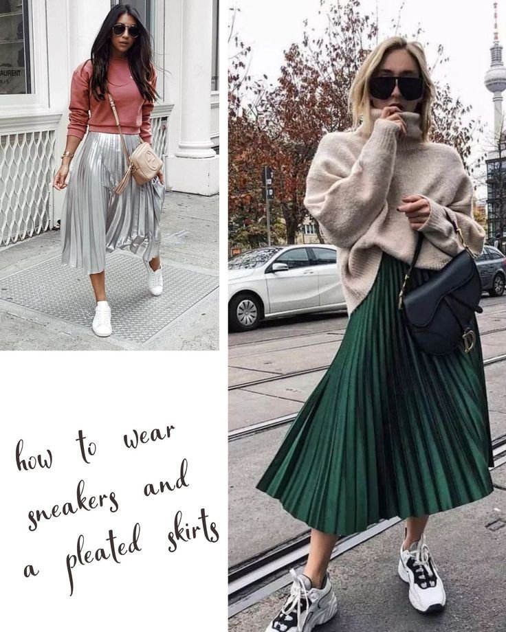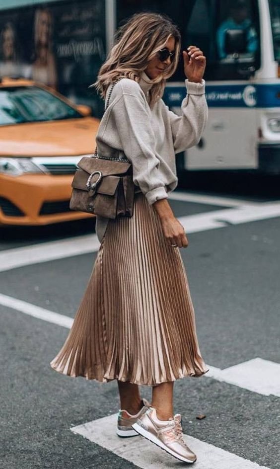Не разбрах защо само за тази пола говорим. Едва ли потребителката, която пусна въпроса, има само една пола и само нея ще носи с маратонки. Аз харесвам и уличния стил, и елегантните варианти, зависи от натурата на човека все пак кое ще предпочете. Не можем да накараме някой да носи солей с маратонки или стилето с пола и поло в ежедневието, ако това не е неговото. Затова и предлагаме различни варианти според нашия вкус (най-вече) и така има избор.