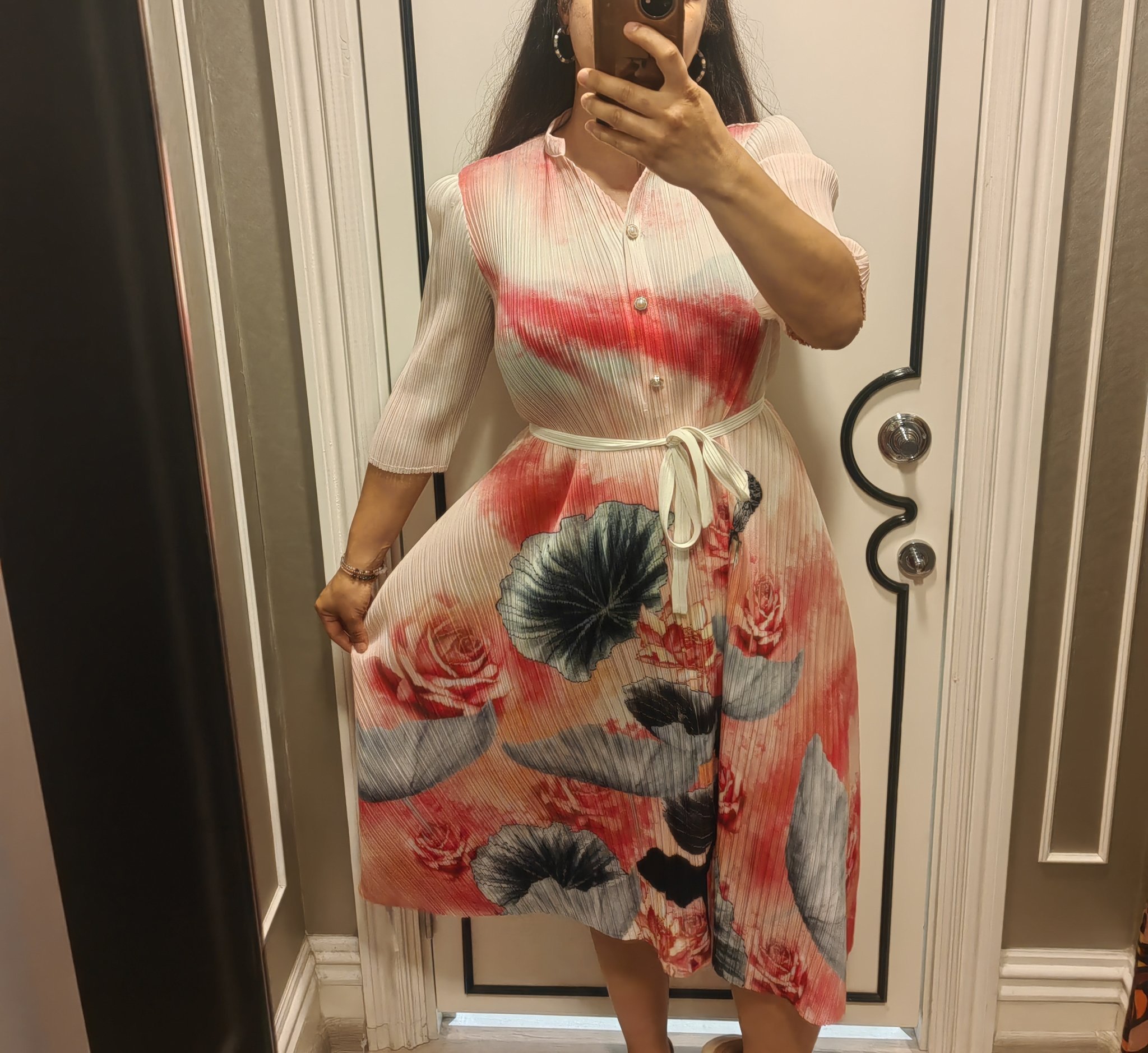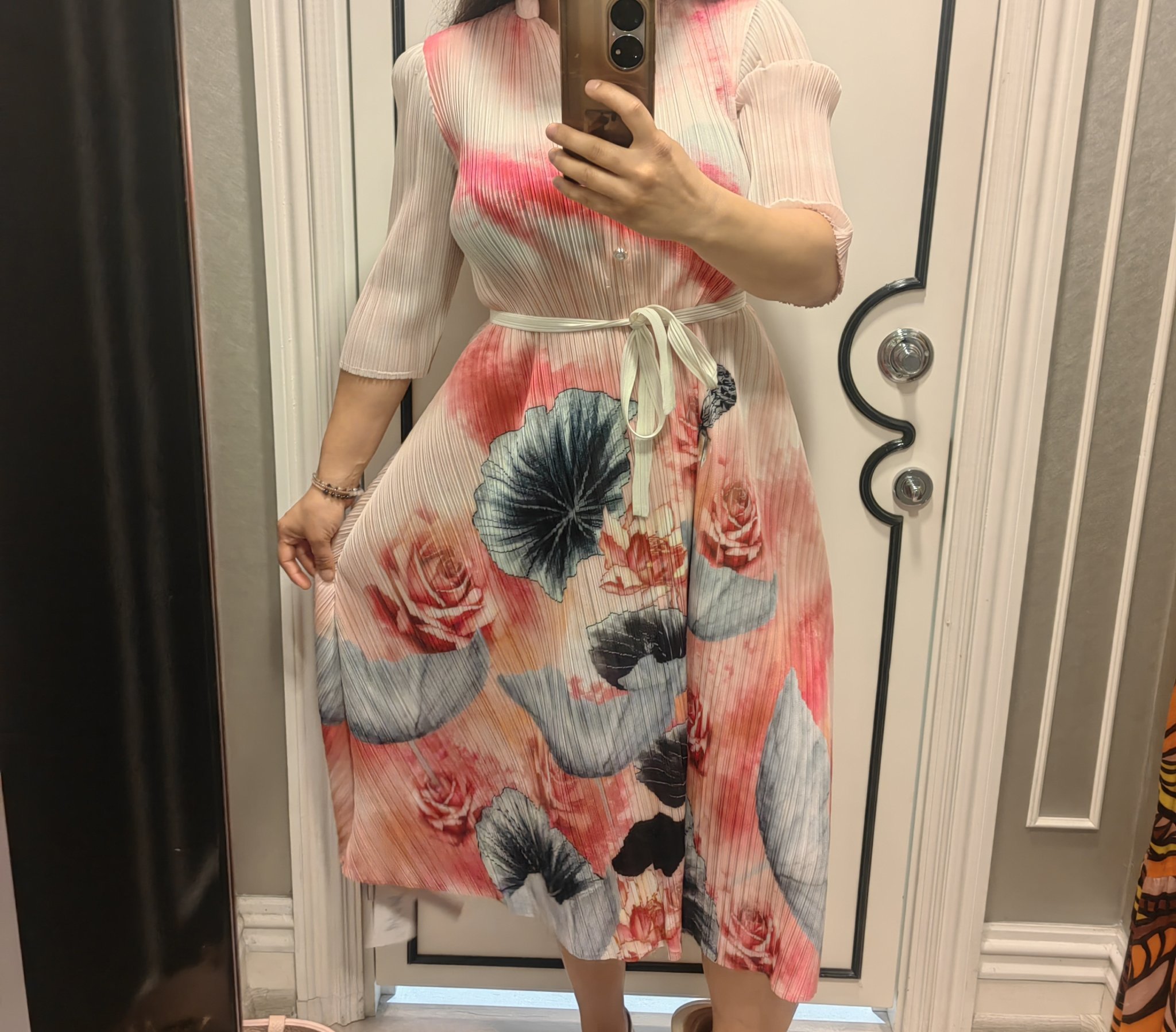 Взех си днес една интересна от мола, за съжаление е полиестер, колкото и да не ми се искаше. Ще видя дали нея ще нося. Но с хубави обувки и чанта може би ще е ок. Ще помисля..