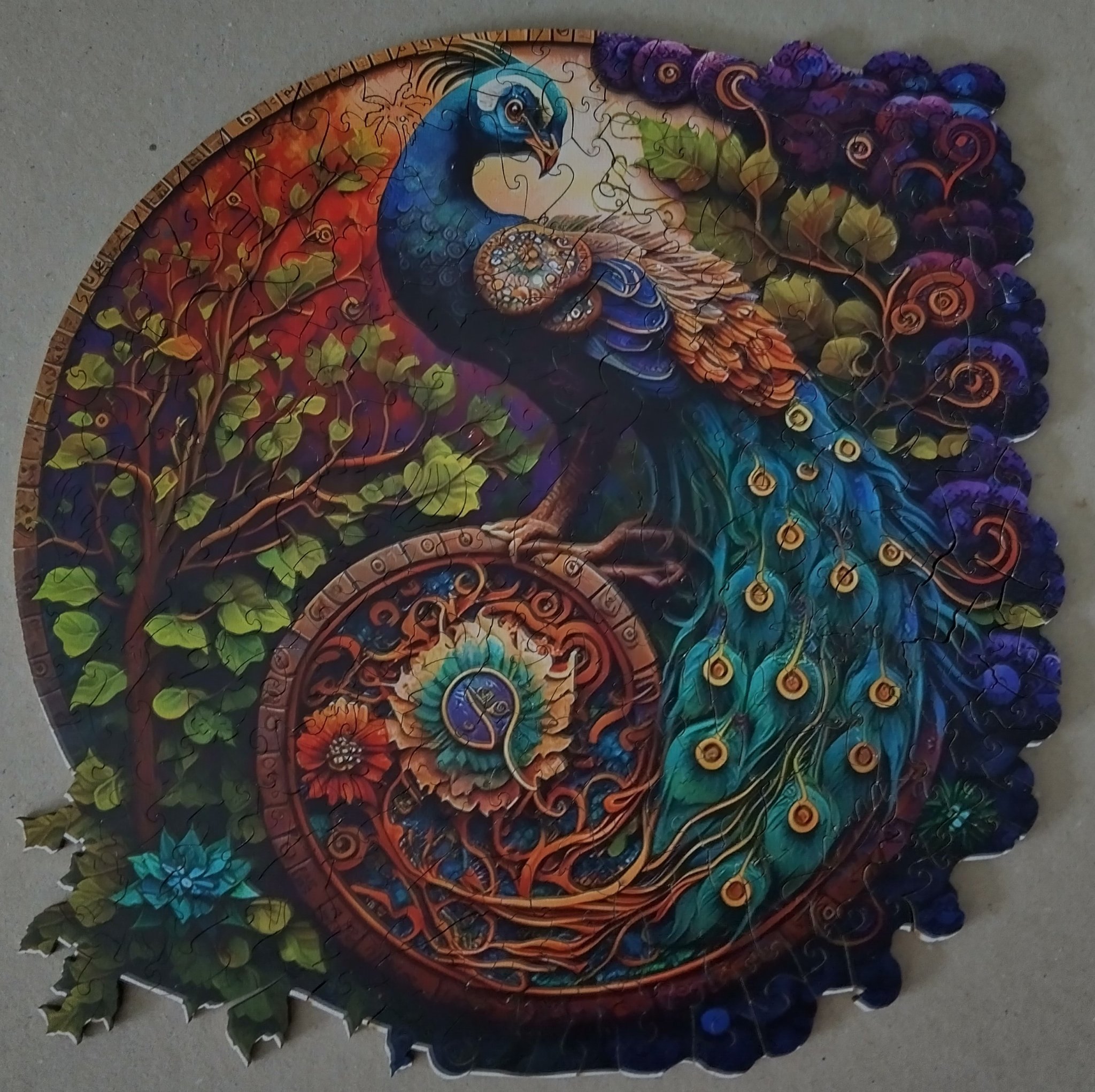 Завърших дървеното пъзелче. Хареса ми толкова много, че преглътнах безумно хлабавата сглобка. На снимката изглежда по-тъмен.