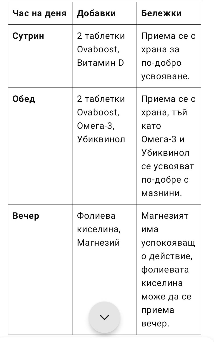Много се чудя за Опти Ова (д-р Станулов ги беше препоръчал), но ми идват много скъпо, а те поне 3 месеца трябва да се пият. Ако взема и мъжката добавка за мъжа ми,то отиде..