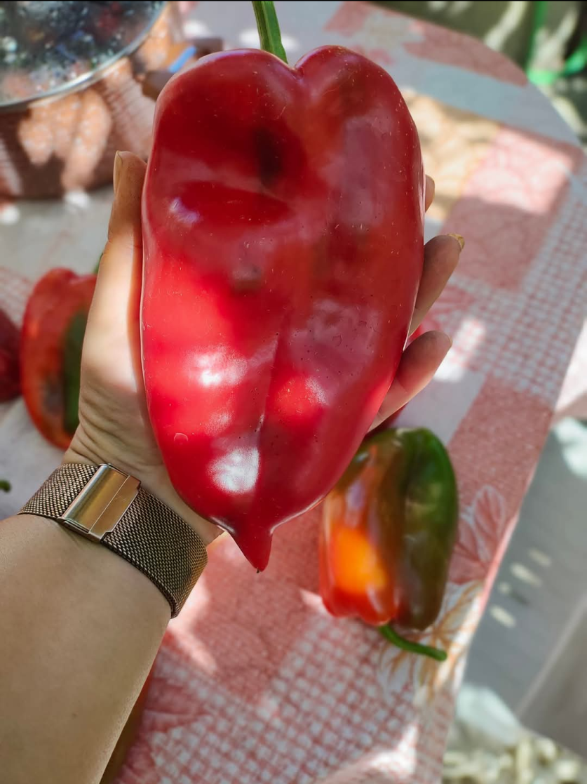 В една готварска група жена от село пусна снимка на 3-4 дълбоки щайги натъпкани с последните за лятото червени чушки -  дълги, прави, месести, като от списание - и искаше съвет какво да ги прави. На мен ми се доплака, аз купувам гадните чушки от магазина.