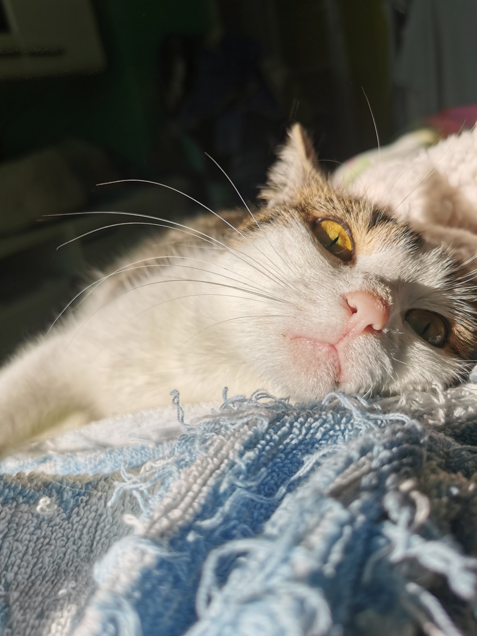 На село имаме една свободна дворна котка, която е майка и баба на всички котки от махалата ни. Тази маца е на 16 години. Обикаля всички налични съседи, които не са много, но почти всички я храним,  кой с каквото разполага. Със сигурност не е яла скъпи консерви и гранули, никога не е ваксинирана, никога не са и давани лекарства.