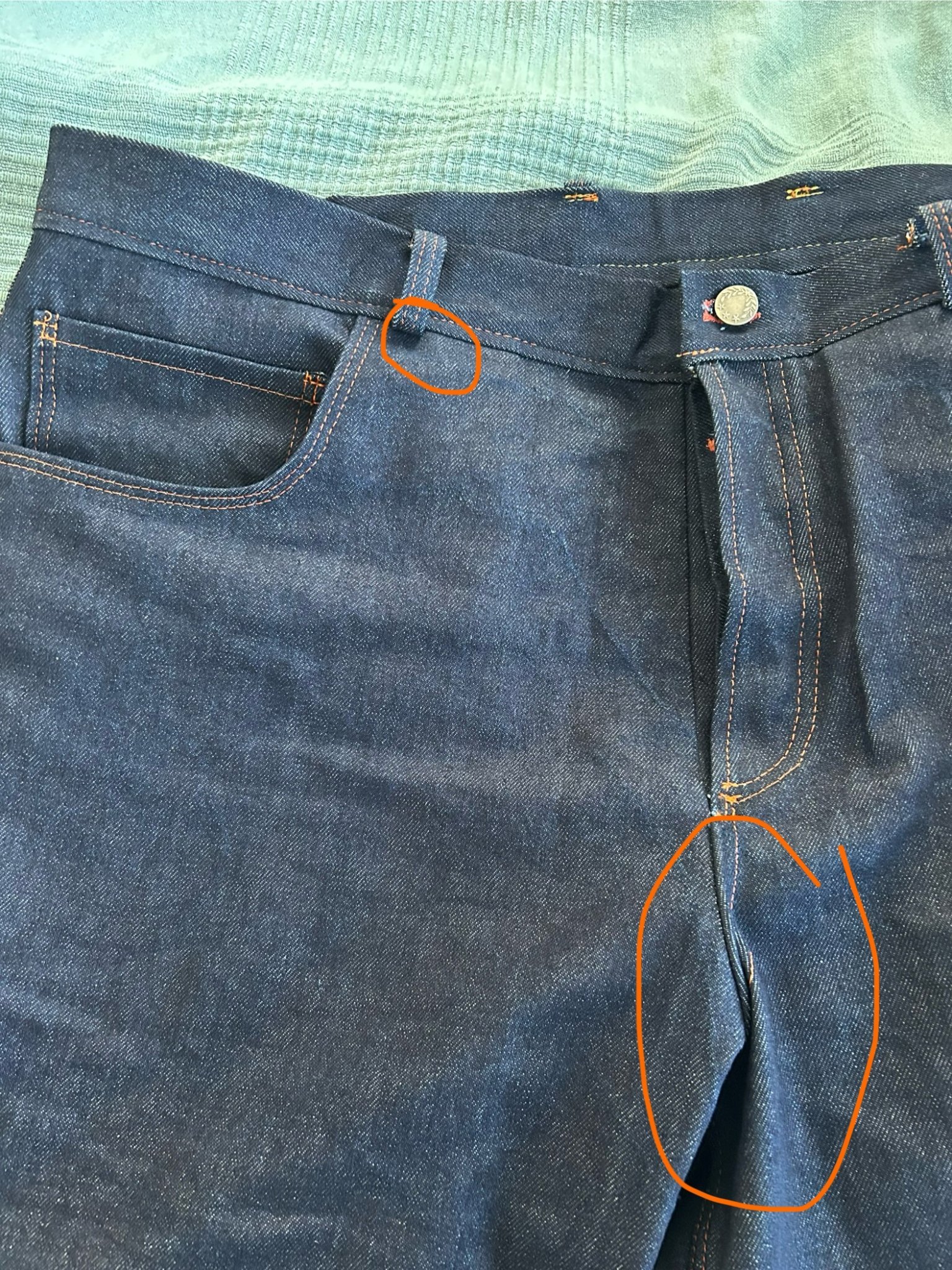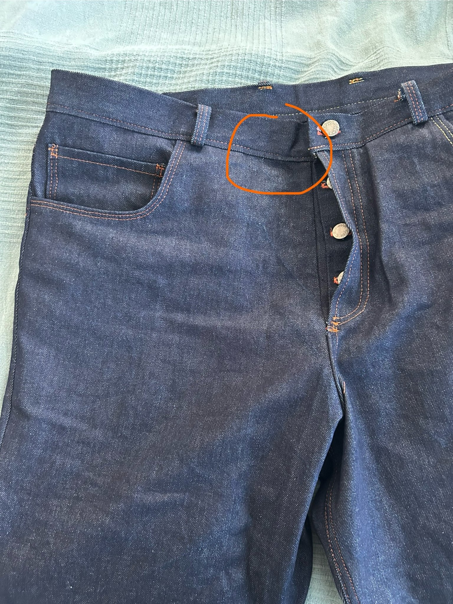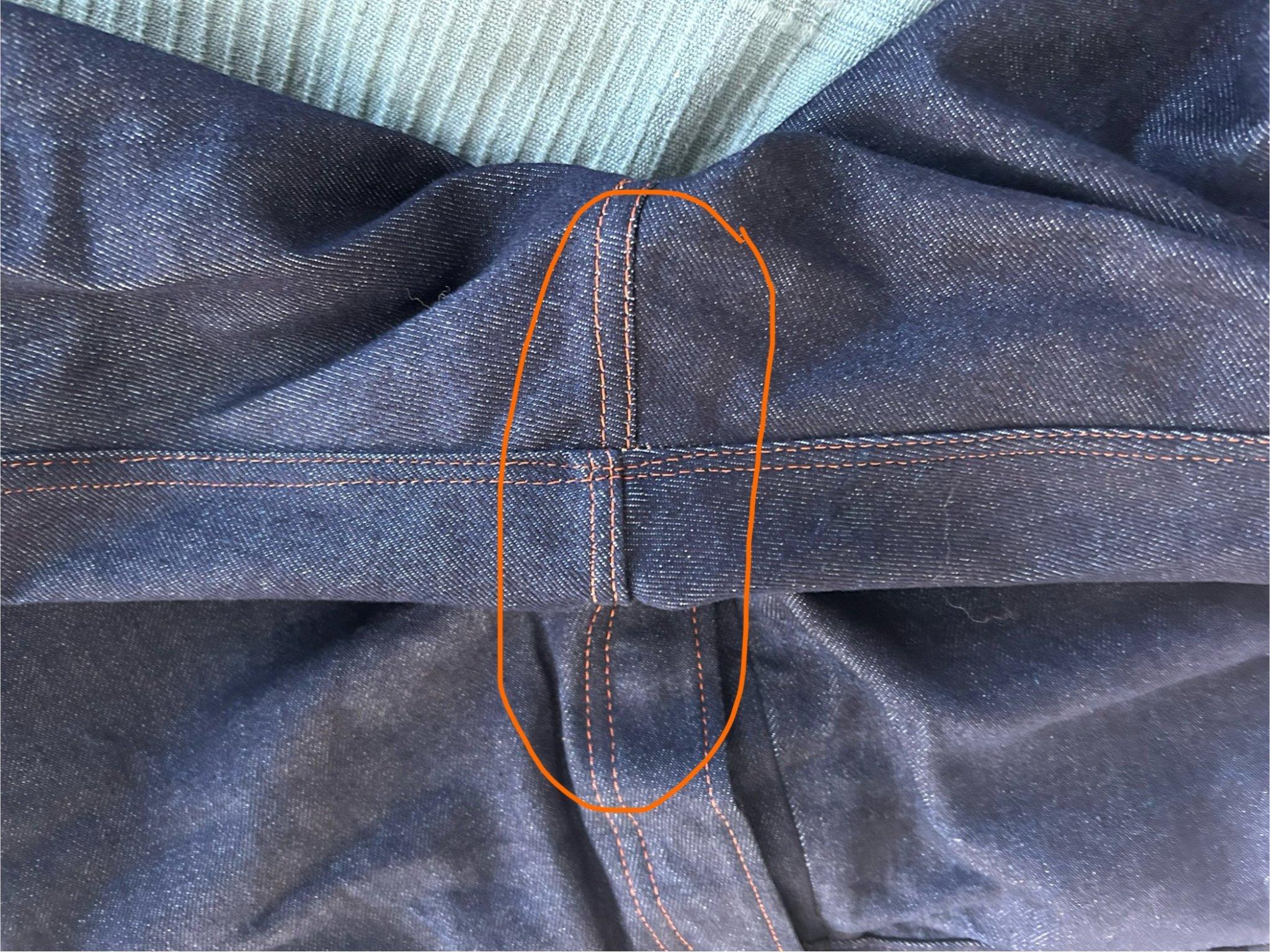 Примерно съм забравила да зашия долната част на гайките. И горен шев на колана ми липсва.