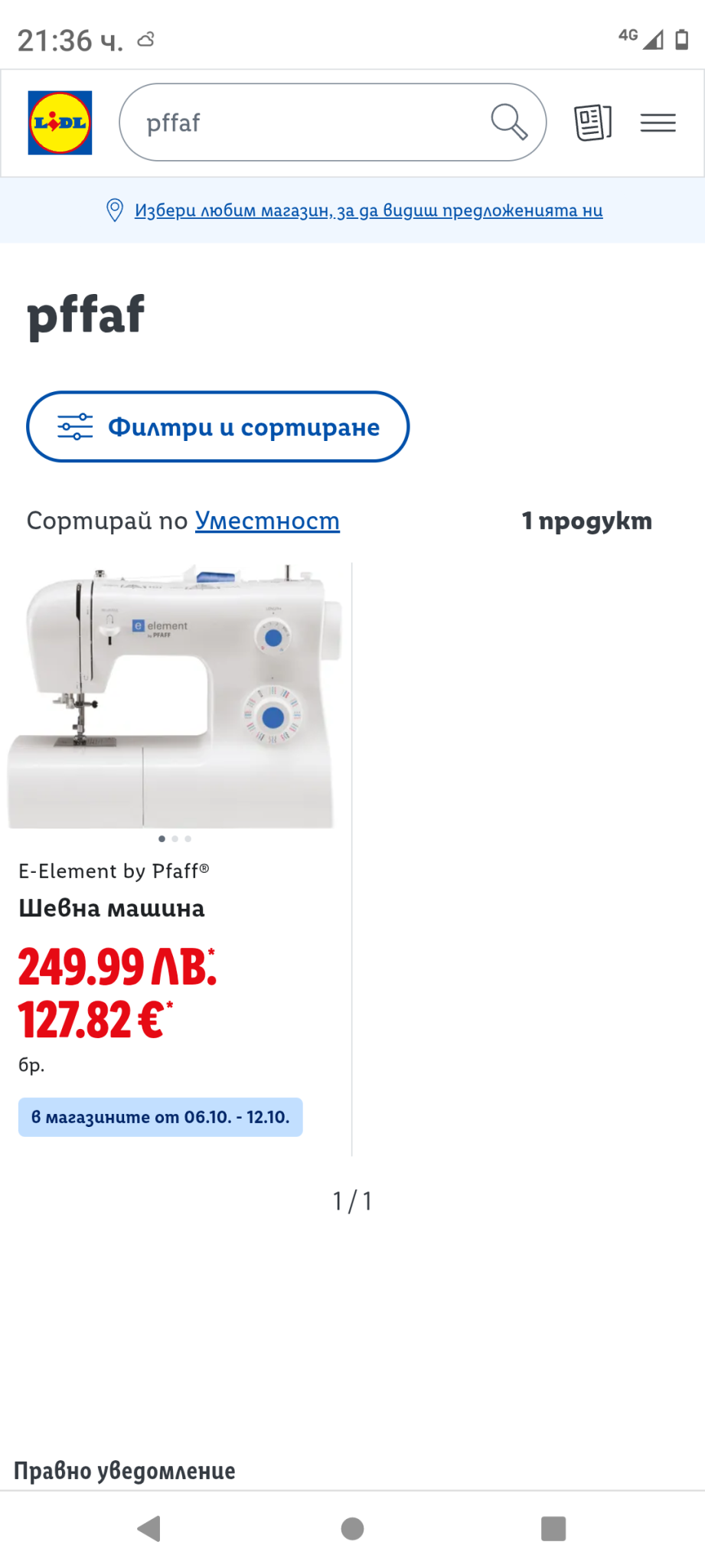 Привет! В сайта на Лидл казват, че другата седмица ще предлагат шевни машини silvercrest и такава на pffaf. На една и съща цена от 250 лв.