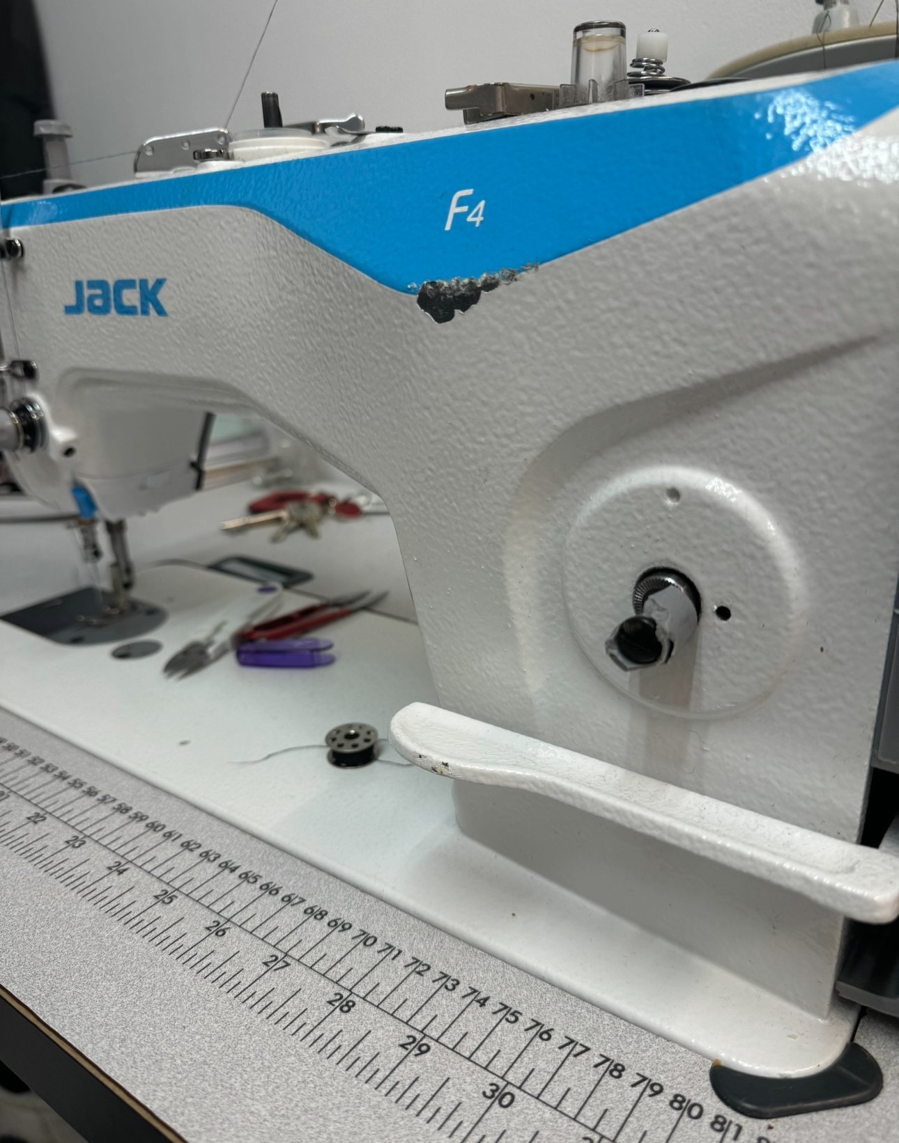 Лепилото в малката тубичка не се втвърдява веднага като моментните лепила и затова се работи спокойно. Намазват се и двете части, поставят се на точното място и се напръсква със спреят, който веднага стяга лепилото. Дори ако има места за запълване, намазва се с лепилото и се пръска със спреят. Другият възможен начин, е да се даде на стругар бойната задача да остърже такава шайба от метал, или плътна пластмаса. Дори да е напълно гладка, а не назъбена шайбата, няма проблем. Помниш долу горе какъв диаметър беше? Ако не помниш, питаш колеги от шивашки фирми да го премерят, по дебелина и диаметър, дори машината да е на друга фирма. Пробива се отвор 3,2 мм. в средата на шайбата и се нарязва резба 4 мм. Навива се дълъг болт 4 мм. с ферзенкова глава. Може да се подостри леко отпред като молив, но да не е остро чак. Ето това е ферзенков болт, но е друг размер, ако се плашиш от цената: https://bauhaus.bg/bolt-s-ploska-frezenkova-glava-vatreshen-shes … -din-7991/p/39825