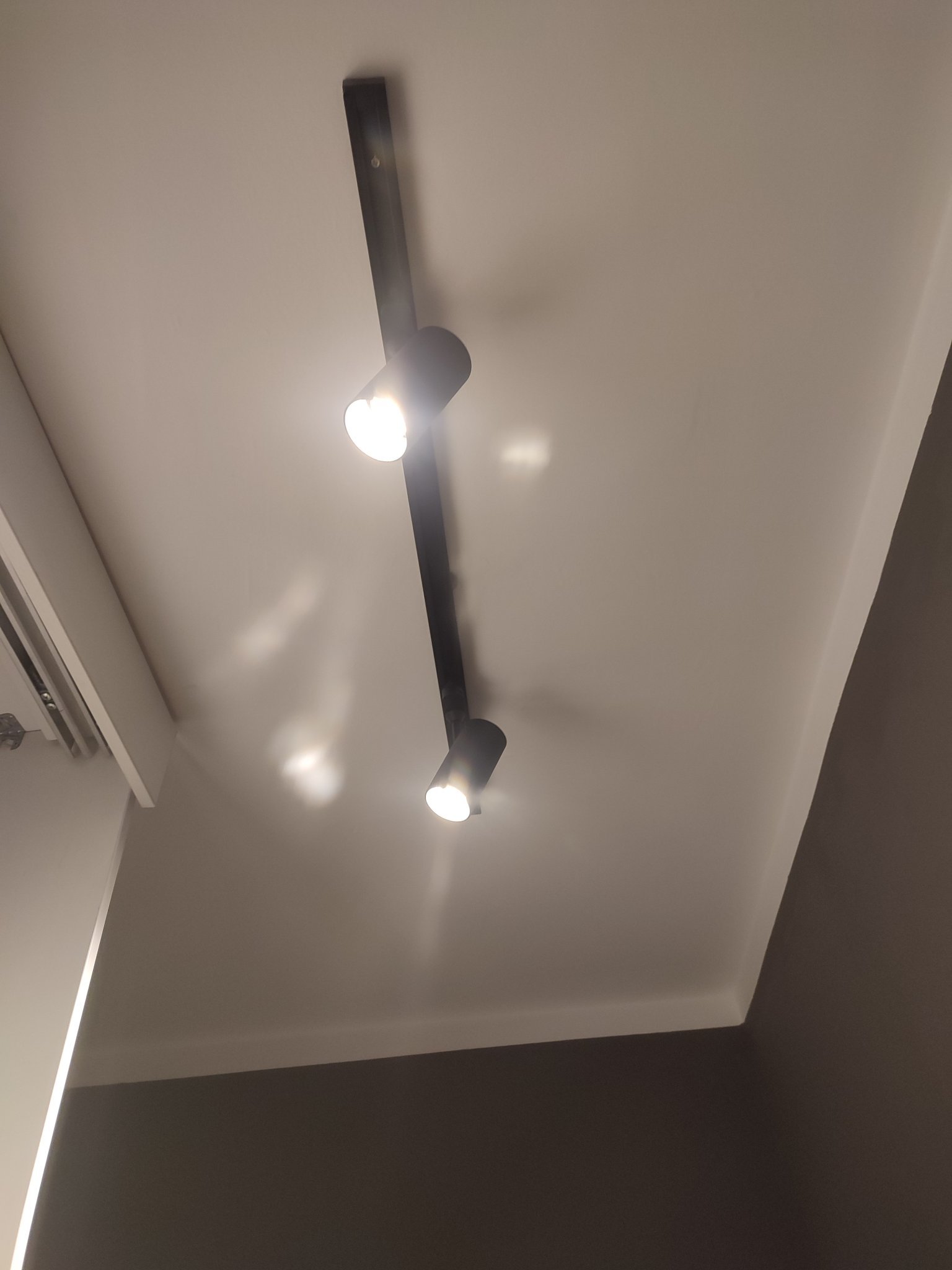 Взех вкъщи в коридора - две релси за външен монтаж, по 1 м на две места, че имам един бетонен трегер и няма как през него да се прекара. Сложила съм четири тела на едното и две на другото.