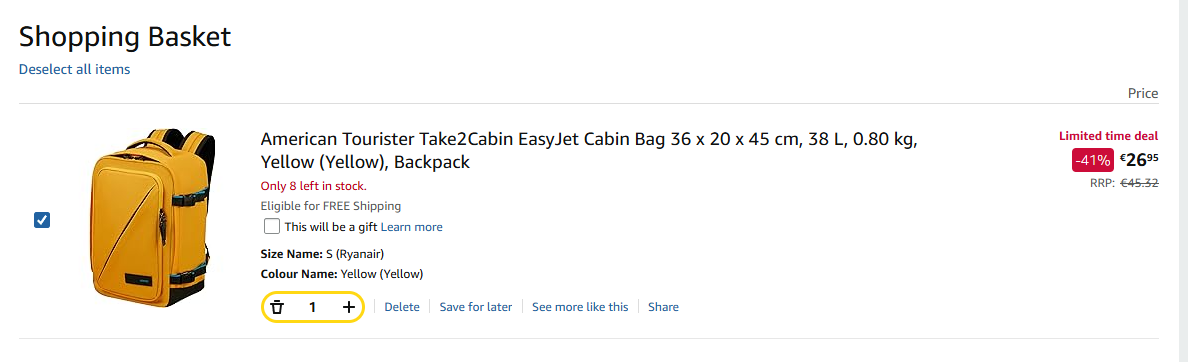 Здравейте! Опитвам се да поръчам тази  раница но в кошницата не влиза размер S, а същата раница, но с размер М. Тук момичетата бяха писали, че са поръчвали тази раница - тогава дали е имало такъв проблем?