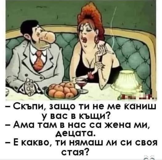 - Не се тревожи! Само кажи, това което ядем сега риба ли е или торта?