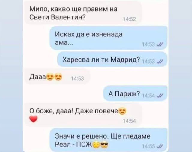 Имаш много здраве от Иван и от Пешо – и те са тука. И недей да се чудиш откъде ги знам, гълъбице моя, нали от тях са ми рогата. Ама са големи пичове и пият като за последно, особено Иван. Пешо ме помоли да ти кажа да не се пръскаш много с Арманито, дето ти го подарил за рождения ден, защото е отсипал повечето от шишето и го долял с чист спирт и като нищо може да те удари в главата.