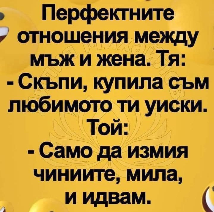 - Георги, ти знаеш ли, че твойта жена ти изневерява с моя мъж?