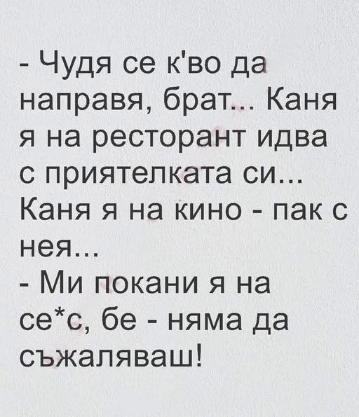 а после ял вкусна мусака, правил любов с жена си и заспал без скандали.