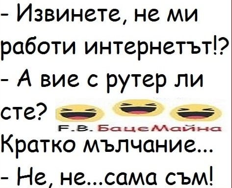 - Еми, аз съм си виновен. Можеше да пусна интернет вкъщи още преди пет години!