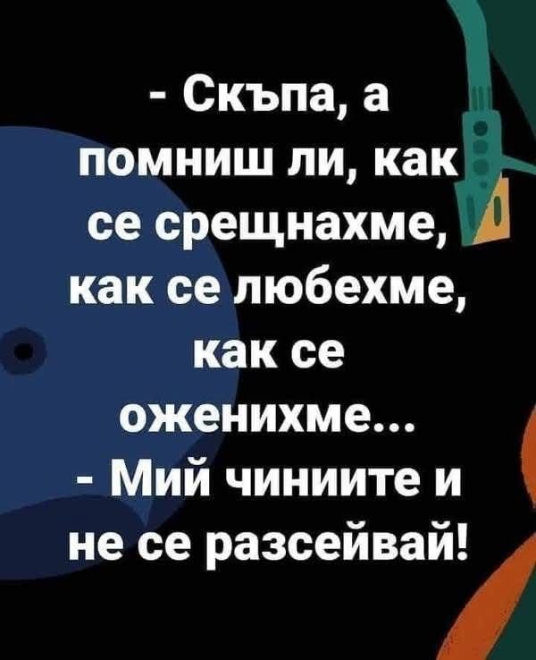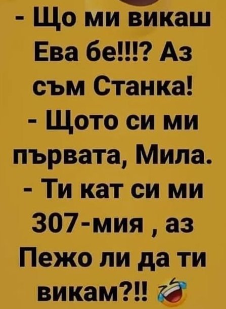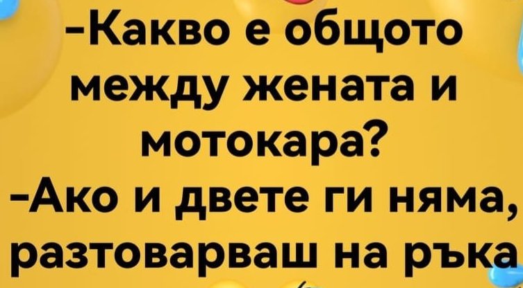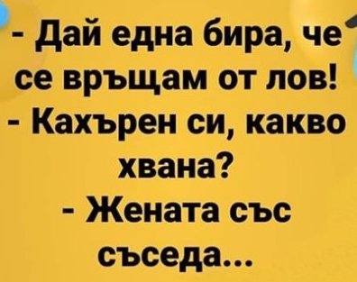 Комшу, къде е жена ти, не се е мяркала доста време!?!