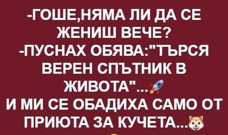 - Иванчо, стига толкова! Дай да се оженим!